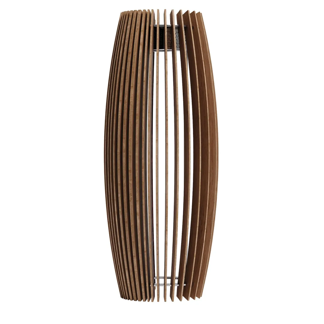 Ibla, when stainless steel structure supporting 25 parasymmetrical strips from the oak staves surprises even the most expert eye. The front part, more intimate, whose thinner and closer strips create a harmoniously varied play of light differs from the back area, whose strips are thicker and differently spaced one from the other to create a unique light play.