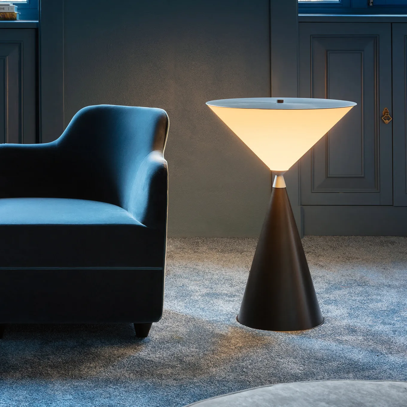 Geometry goes modern chic with the Icones Table Lamp by Lorenza Bozzoli. Featuring two cones, one slim and gray and one wide and white, the table lamp is characterized by crisp, stark lines, lending a formal feel to a modern living room. Bulbs: 3 x LED max 8W E27-220V or E26-110V.