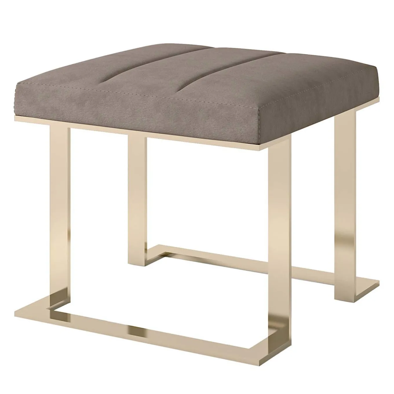 This padded stool features a golden galvanic metal base that enhance the gray econubuck upholstery. A soft padding enhances the comfort and makes this a perfect addition to any contemporary setting. Please ask Concierge for customization options.