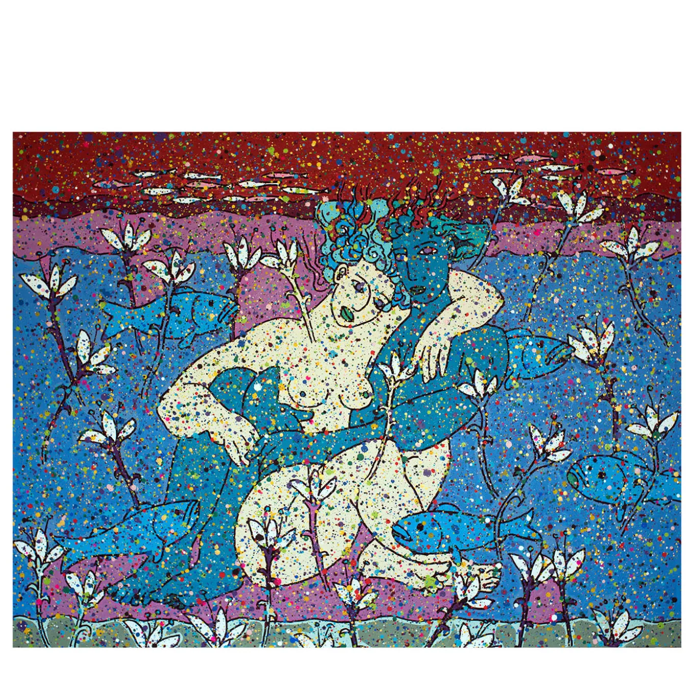 This painting, a unique piece, is part of a series dedicated to the tragedy of migrants lost at sea. It was featured in the exhibitions “La banalità del mare” and “Abissi di Speranza 2024,” held at the Priamar Fortress and Maschio Angioino. Created with acrylic on canvas, the work is characterized by a “dripping veil,” which, according to the artist it describes as a delicate, embroidered curtain between the viewer and reality. The artwork comes with a certificate of authenticity.