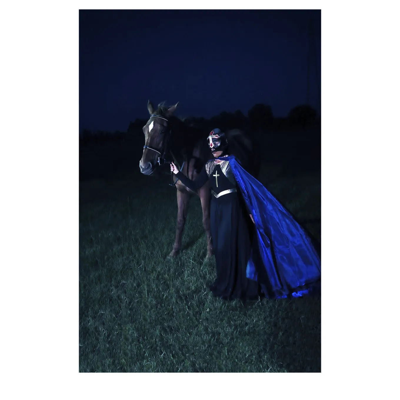 Part of an extraordinary series of photographs named after the Italian words for “Demon under the Skin”, this vividly colored oeuvre portrays a strong and unconventional female character, rising from a hurting past that shows an illuminated path ahead. Please consult the Artemest catalog for other available photographs from this unique series.