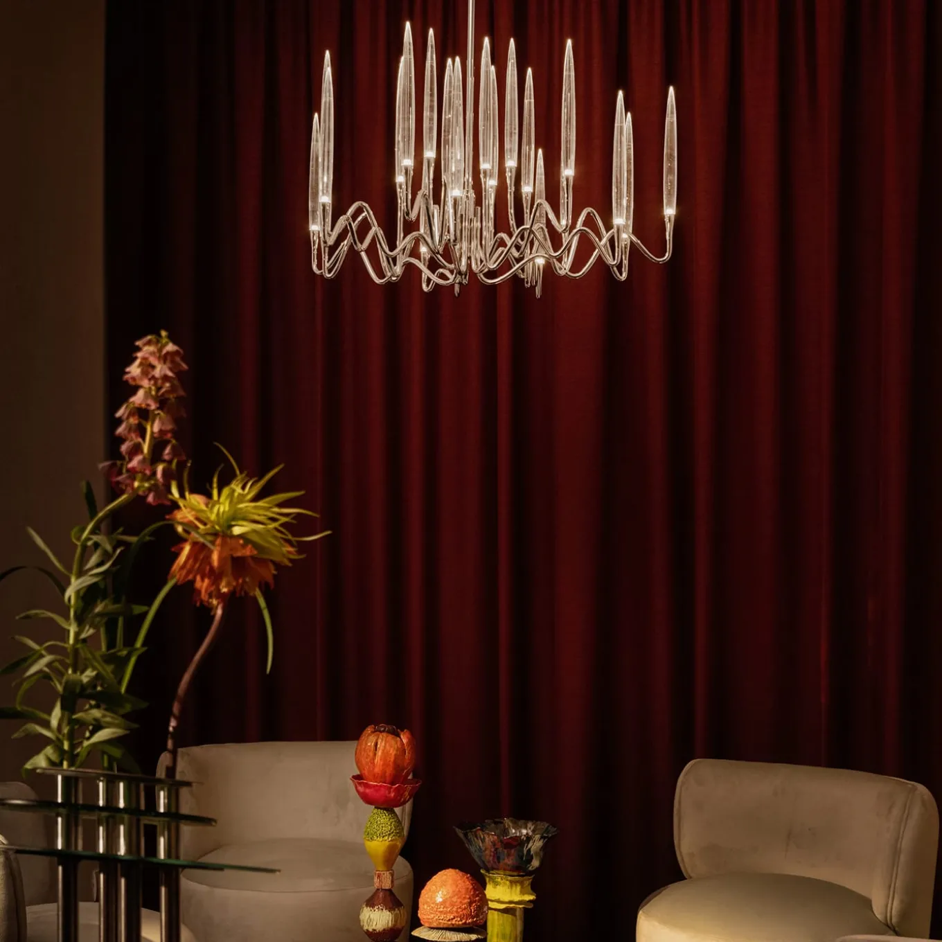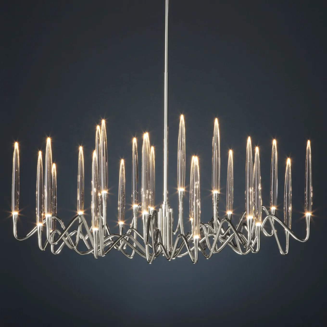 Il Pezzo 3 Round Chandelier, designed by Cosimo Terzani and Barbara Bertocci, features 27 LED lights and a diameter of 120 cm. Inspired by Arabic calligraphy and classic candelabrum design, it boasts a hand-forged brass structure with elegant solid crystal “candles”. Utilizing advanced LED technology, it creates a sophisticated and warm light. Each chandelier is uniquely numbered for authenticity. it is available in different finishes and heights. Please contact the concierge for details.