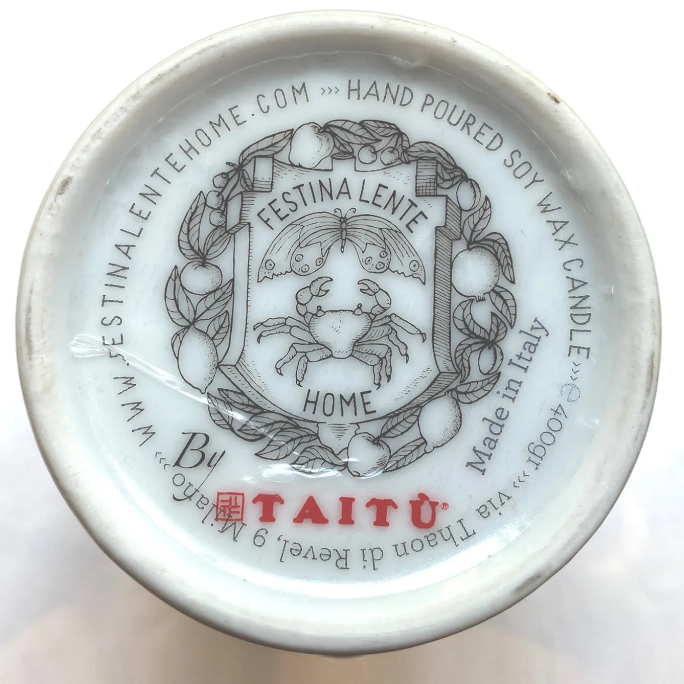 Delivered in a luxury box, this candle (400 gr capacity) of pure soy wax with a wick in cotton and paper boasts notes of cinnamon, elemi, and oakmoss needles among others. It is hand-poured in a porcelain container with lid designed by Taitù Milano depicting the Festina Lente Home’s logo of the crab and the butterfly. Evoking burning fireplaces and the scent of mulled wine, the candle makes a total burning time of about 90 hours, it has no GMOs and its fragrance is vegan, cruelty-free, and phthalate-free.