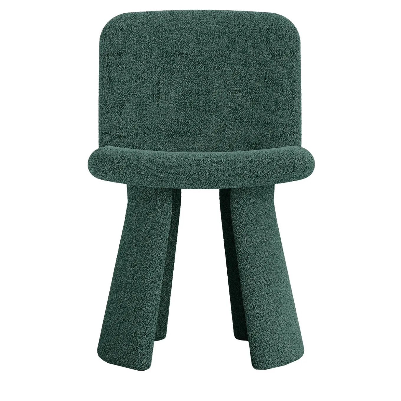 The ila chair features a robust steel structure covered with flexible cold foam for enhanced comfort and durability. Upholstered in deep teal bouclé fabric category D 803, it offers a distinctive textured appearance. Designed by Studio Angeletti Ruzza, this piece combines modern aesthetics with cozy support, suitable for a range of interior settings. Customization options include a variety of colors and leather upholstery; contact the Concierge for more details.