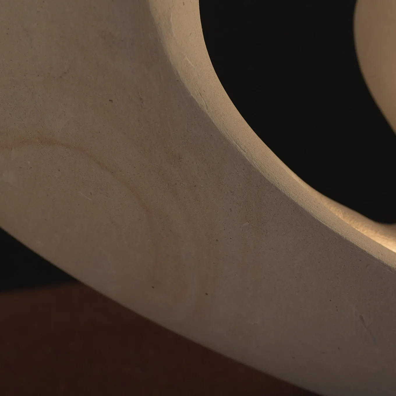 Incanto presents a unique artistic expression crafted from rare marine-origin stone from Lecce, southern Italy, known for its intricate fossil inclusions. Illuminated by a warm white led strip with customizable color tones, this piece showcases fluid, abstract forms that evoke the natural beauty of tidal movements. Each sculpture features two visible fossils and an engraved signature, reflecting detailed manual carving techniques that bring out the texture and subtle chiaroscuro effects.