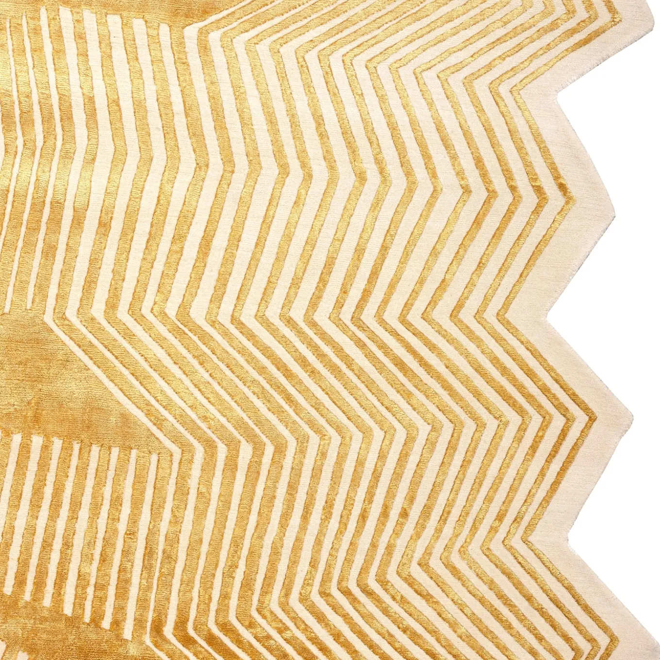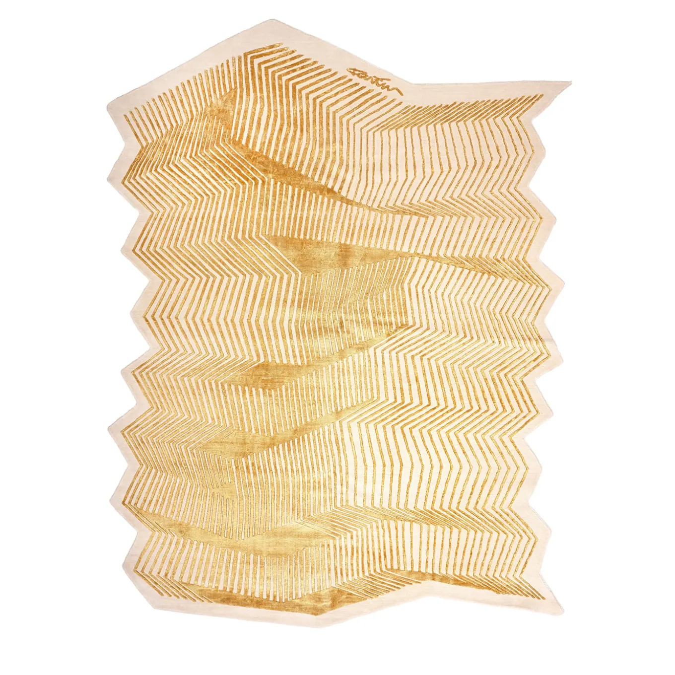 This unique rug, part of the Limited Edition collection, is a visual masterpiece designed by Karim Rashid. Hand-knotted in Nepal, it blends gold accents with an optical motif inspired by fashion and architecture. With a base height of 0.05 cm in Himalayan wool and a 0.07 cm silk decoration, it offers a stunning composition of 50% wool and 50% silk. Customizable in color, dimensions, and fiber composition, please inquire with the Concierge for details.