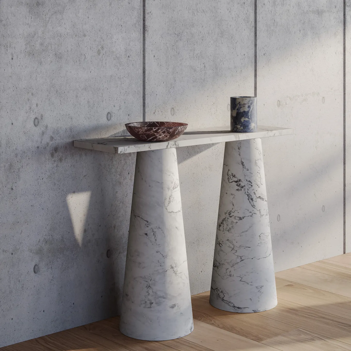 The stupefying chromatic quality and resilience of blue Sodalite marble make this striking vase increasingly alluring. Designed to complement as an interlocking accessory the tables and consoles from the Inside Out Collection, it is defined by a rigorous silhouette in impeccable geometric style consisting of two stacked cylinders in different sizes. This breathtaking design will stand out as a standalone piece or displayed with charming fresh or dried flowers. Please note that marbles and stones are natural materials and they can differ also if coming from the same quarry or the same block. The product shown may differ from purchased items. Every piece is unique.