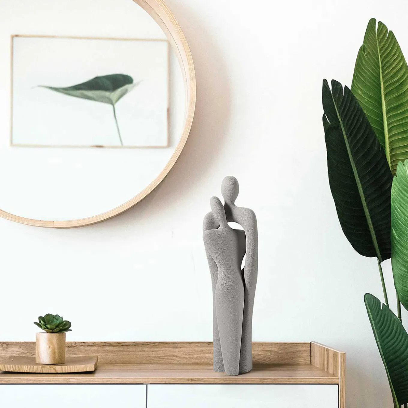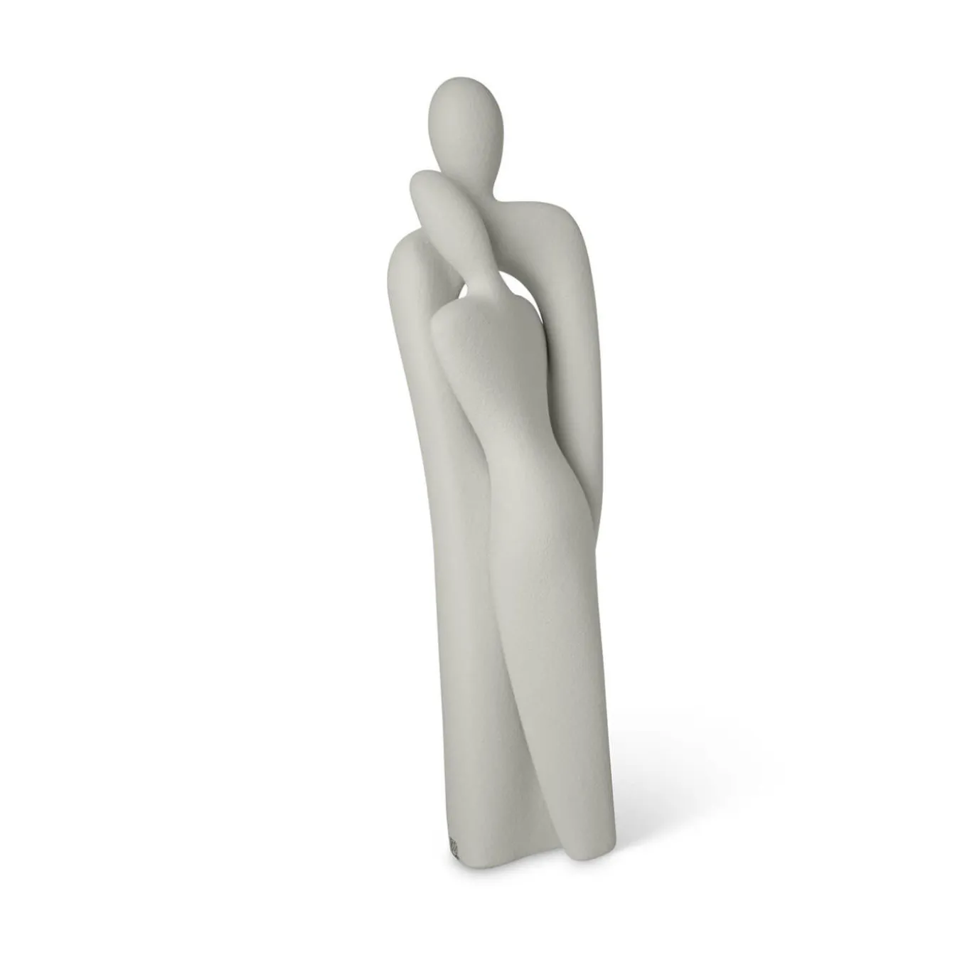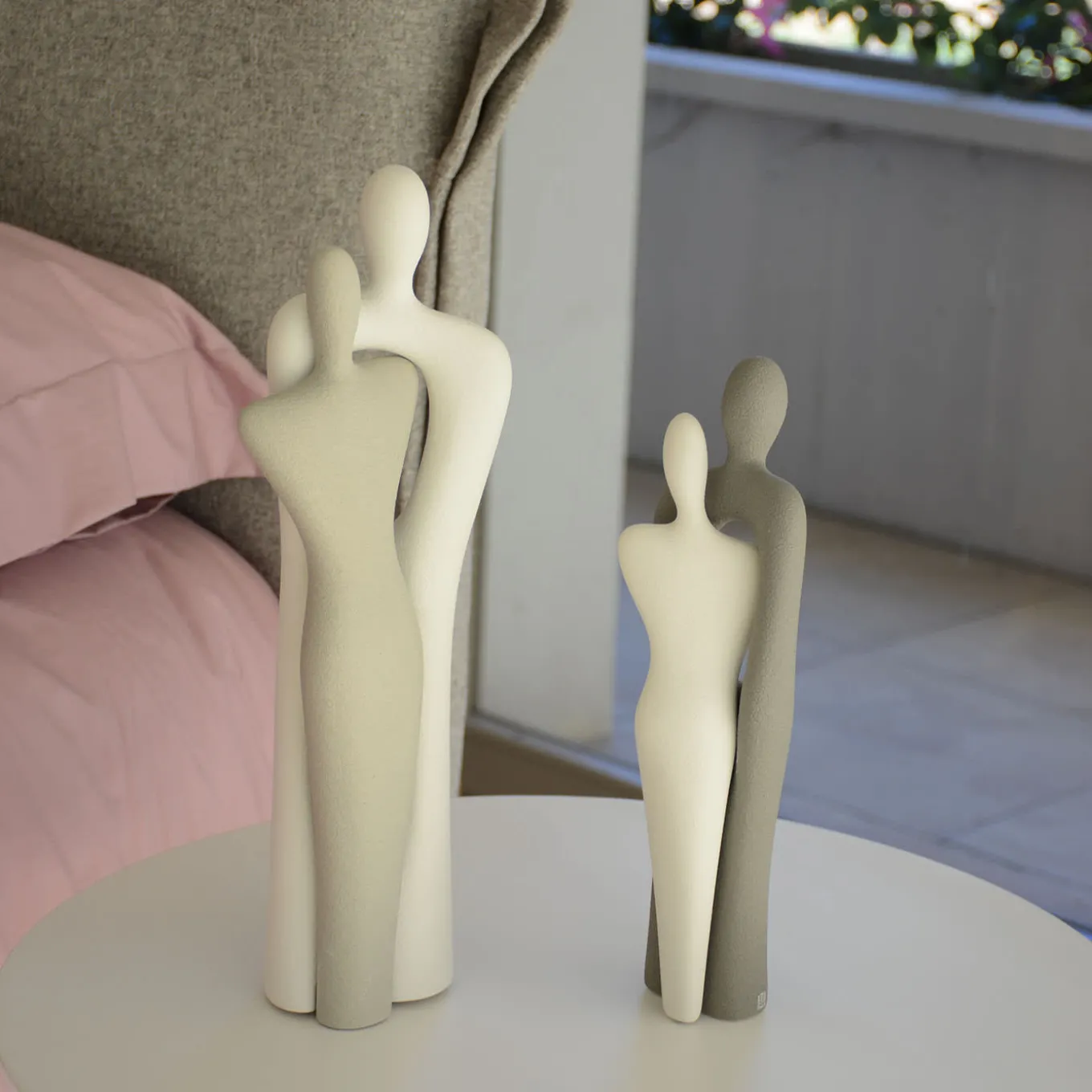 The union of two bodies: two stylised figures hugging so tightly they almost become one. A timeless moment. The aesthetic dimension of the embrace, which brings one closer, resolves tensions, cancels distances.