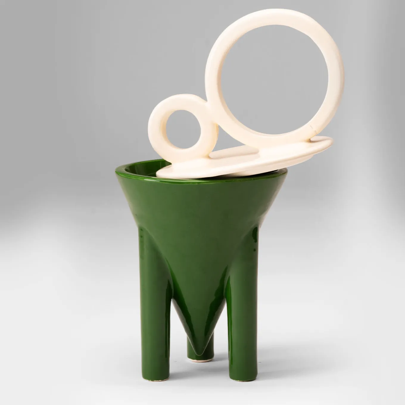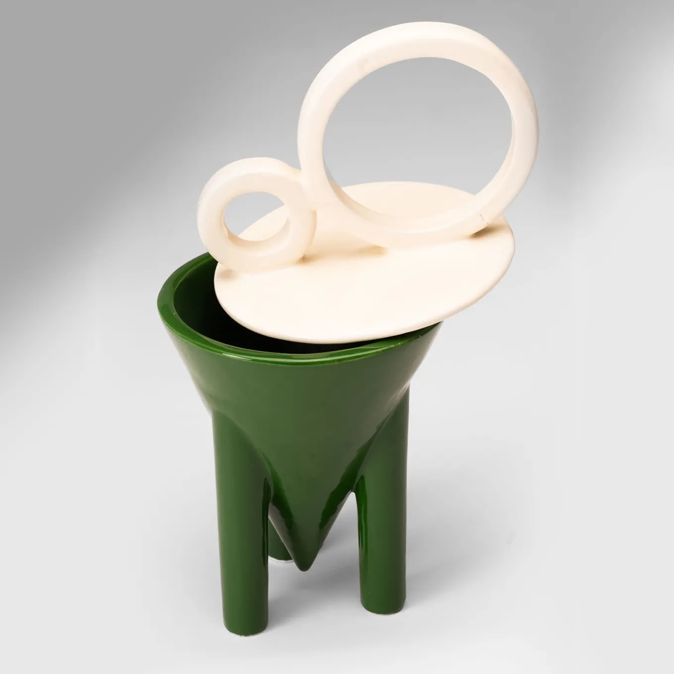 The Iperbole2 is a versatile container crafted from white terracotta, uniquely fired “biscotto” style and glazed with non-toxic finishes before undergoing a final high-temperature firing. This container serves as an elegant holder for coffee powder or capsules, or can be utilized to neatly store spices. Available in a stunning array of color combinations, the container and its accompanying lid can either match or showcase contrasting hues, allowing for personalization according to individual taste. Contact the Concierge for further information.