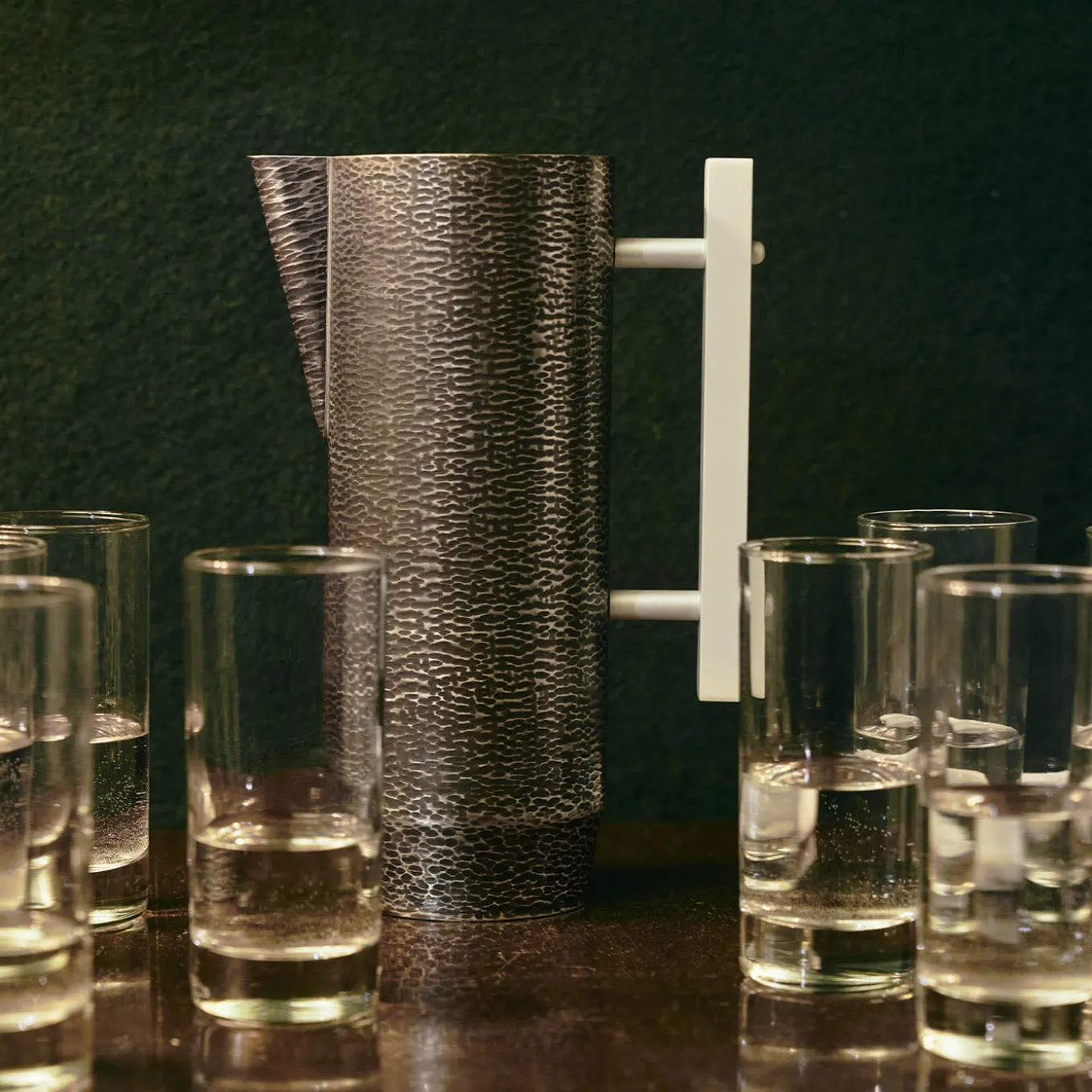 The Iside Bronze Pitcher stands as a testament to the harmonious blend of aesthetic appeal and practical function. This burnished white bronze jug showcases a sophisticated design, characterized by a sleek silhouette and a refined textured surface that captures light beautifully, enhancing its visual allure. Ideal for serving water, wine, or cocktails, this pitcher is crafted for moments that call for a touch of elegance. Each detail reflects a commitment to quality craftsmanship, transforming ordinary gatherings into extraordinary experiences. With its contemporary style, the Iside Bronze Pitcher is an essential accessory for any tabletop, elevating the atmosphere of conviviality with its timeless luxury.
