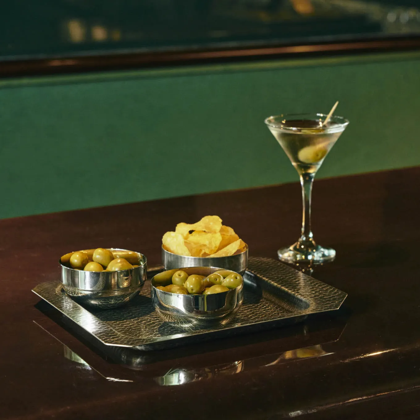 Experience the epitome of sophistication with the Iside bronze tray with four bowls. Crafted as part of the prestigious Iside Collection, this exquisite ensemble features a medium-size tray accompanied by four beautifully designed cups—two with a smooth finish and two with a hammered texture. Each element is meticulously crafted to elevate social gatherings, making every occasion a celebration of style.The tray showcases a captivating burnished finish, providing a refined surface that contrasts elegantly with the cups, which are designed to catch and reflect light in vibrant tones. This set serves not only as a functional piece for serving aperitifs, finger foods, or sauces but also as a statement of artistry and contemporary design.Embrace the art of hosting with a set that pays homage to traditional craftsmanship and innovative design, transforming each service into a unique aesthetic and sensory experience.