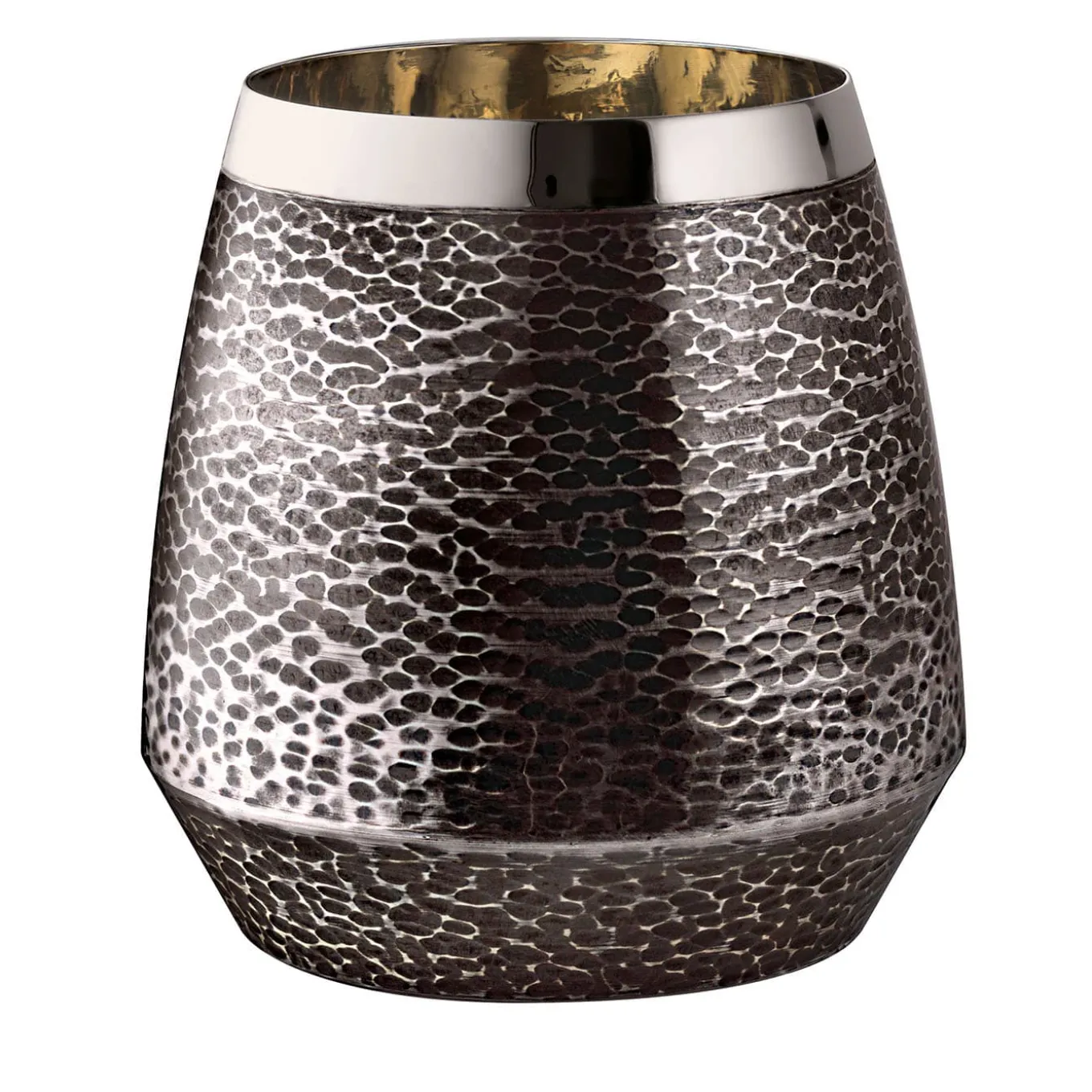 Experience the embodiment of refined craftsmanship with the Iside Bronze Tumbler. This unique piece showcases a expertly hammered outer surface, creating a stunning interplay of light and shadow that enhances the visual depth. The polished interior complements the quality of the metal, providing an elevated experience for any beverage served within.Ideal for cocktails, water, or other drinks, this tumbler is designed for those who appreciate sophisticated design and exclusivity in their tabletop accessories. Part of the esteemed Iside Collection, it elegantly fuses traditional techniques with modern aesthetics, transforming every sip into a luxurious sensory moment. Enrich the dining table with this remarkable tumbler, a true statement piece that reflects both elegance and functional sophistication.