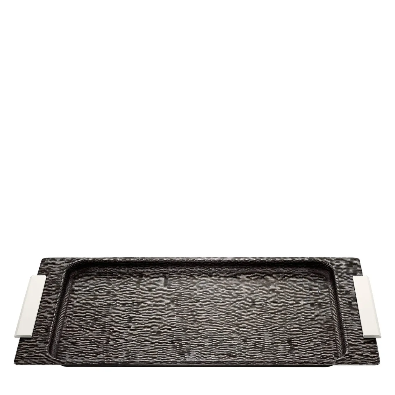 The Iside Rectangular Bronze Tray with Handles epitomizes elegance and practicality, serving as a sophisticated centerpiece for any table setting. Crafted in a striking bronze noir finish, it features pristine white bronze handles that enhance its refined aesthetic. The tray’s hand-hammered surface captures and reflects light beautifully, creating dynamic visual interest that adds depth to its design.This versatile accessory seamlessly combines traditional craftsmanship with modern elegance, making it ideal for both everyday use and special occasions. The unique texture and refined detailing cater to those with an appreciation for exclusive design, transforming ordinary moments into extraordinary experiences. As part of the exquisite Iside Collection, this tray is a must-have for enhancing any home decor with timeless style.