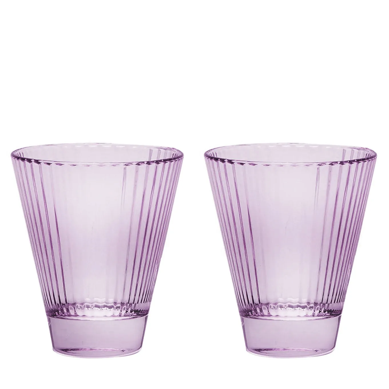 In this exquisite set of two V-shaped stemless wine glasses, high-quality materials and modern silhouettes coexist harmoniously. Particularly suitable for a contemporary home, this set fashioned of glass will be ideal to add a subtle pop of glamour to any table. These glasses are distinguished by a delicate yet dynamic texture and can be combined with other items of different colors and texture for a dynamic effect.