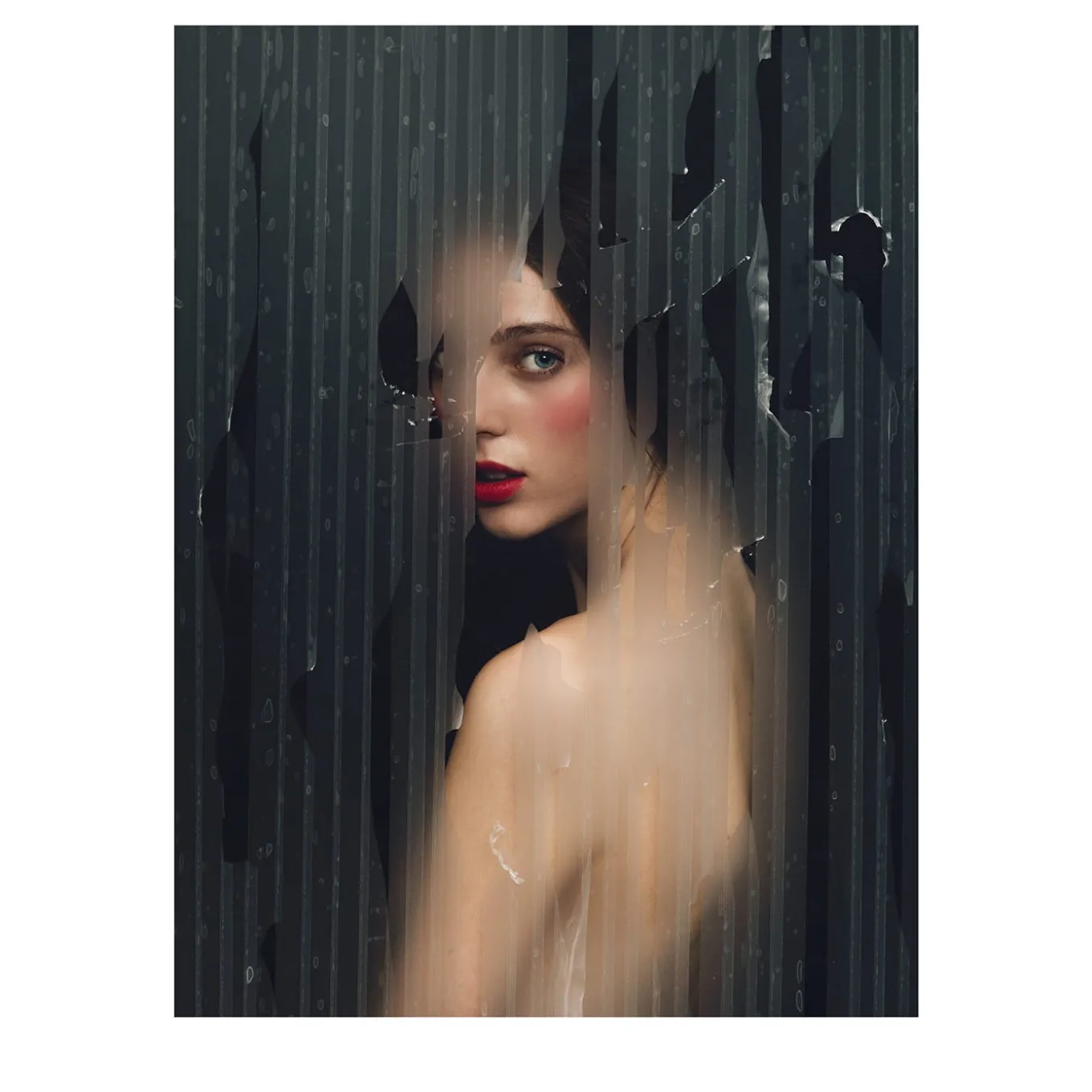 This precious fine-art photographic print on 100% vegetal paper flaunts a stunning retouch-free shot of a woman captured in daylight. Partially veiled by a panel specifically designed for offering only glimpses of her silhouette, the photograph exemplifies Gradella’s poetic detachment from his subjects. Please explore available size variants, framed versions, and certified-Hahnemuhle® prints with the Concierge.