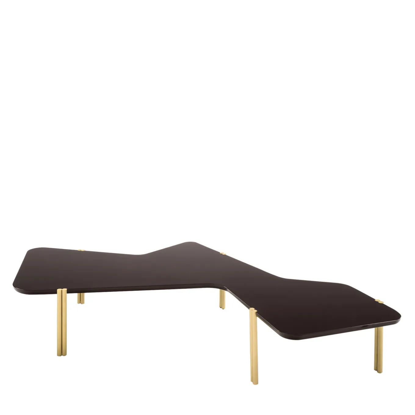 Inspired by the organic forms of Hans Arp’s abstract compositions, these tables are defined by wavy lines that evoke the shapes of plants and other natural motifs. The tops are made of wood with a lacquered finish and each leg is composed of two brass cylinders that create an alluring contrast. Showcased at Salone del Mobile during 2018 Milan Design Week, these tables are entirely stackable, and can be displayed separately or arranged to create an original conformation that will add a playful touch to a modern living room or office decor.