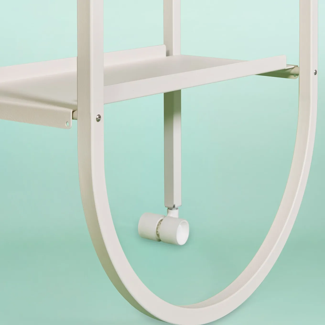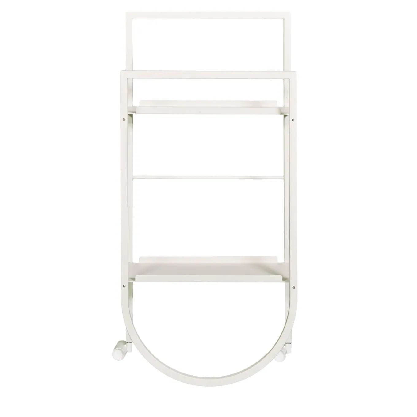 The JJ White is a multipurpose metal trolley featuring a composition of intersecting vertical and horizontal lines that define its clean, architectural structure. Designed for versatility, it integrates seamlessly into bathrooms, kitchens, living rooms, hallways, or bedrooms. Equipped with two spacious trays and smooth-rolling wheels, it provides practical storage and mobility while introducing a subtle touch of contemporary character. Other color options are available in the Artemest catalog.