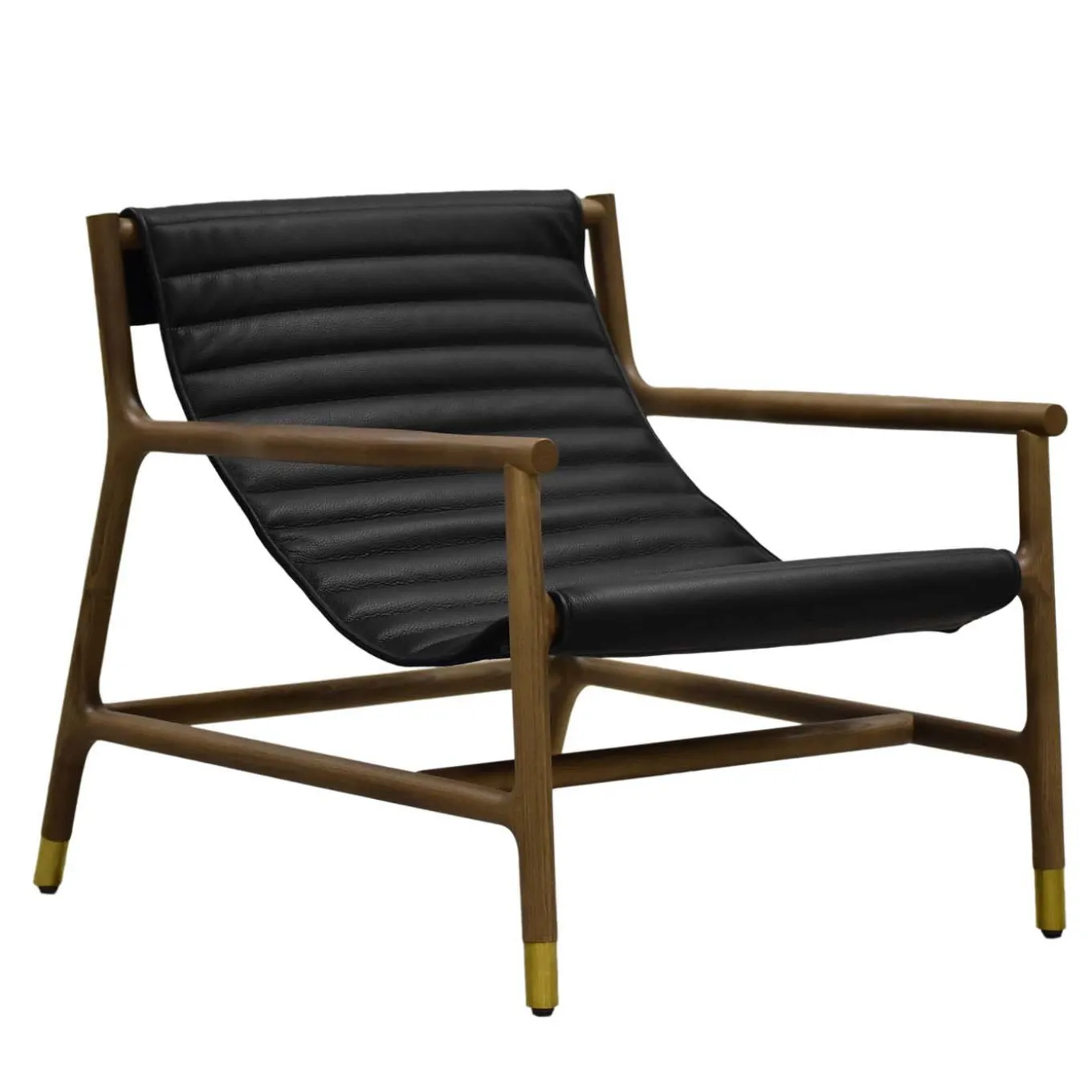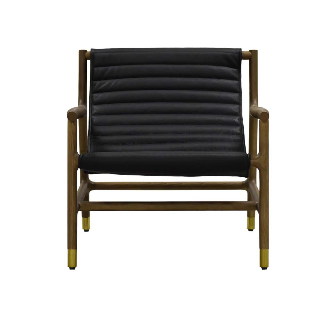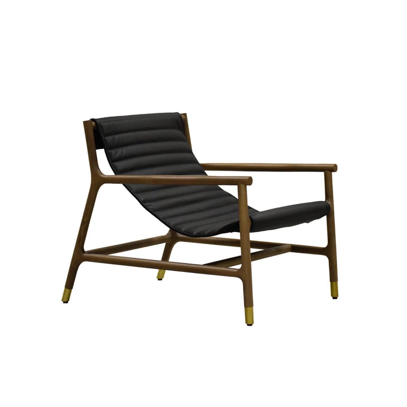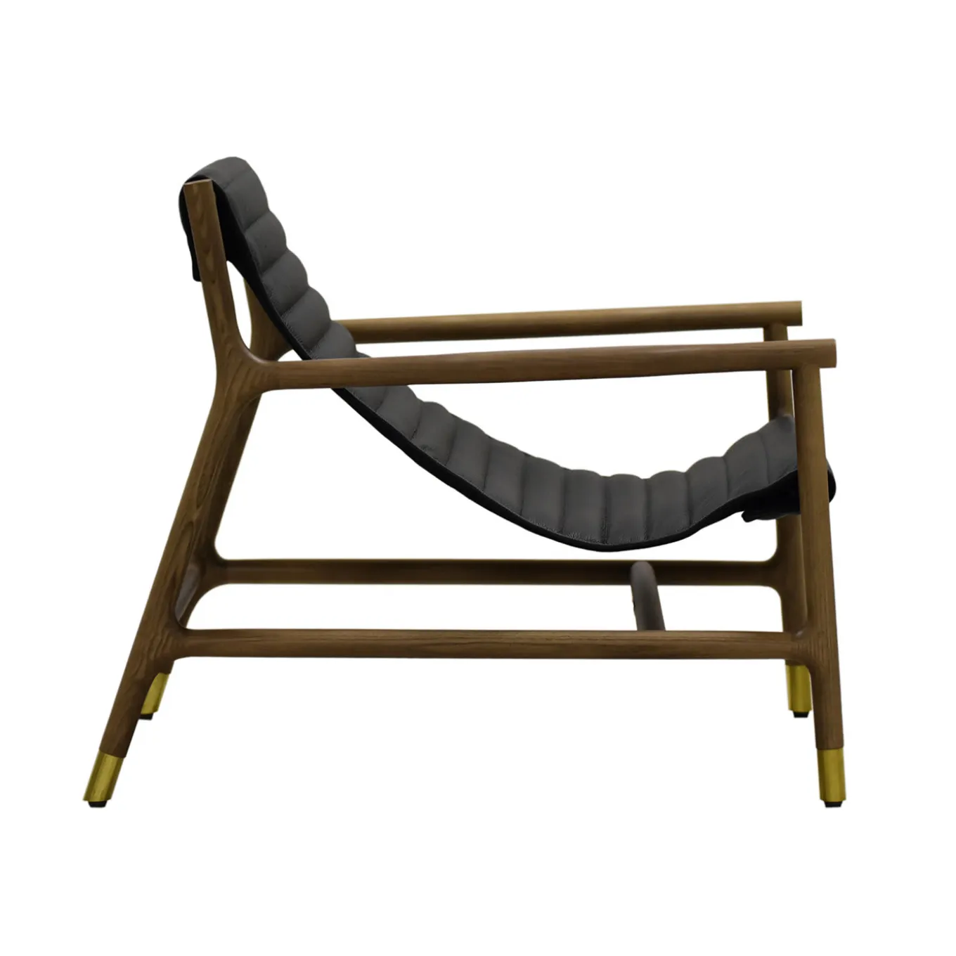 A squared, lightweight frame in solid ash supports the outstanding component of this exclusive lounge chair. Its anatomical seat is upholstered with quilted leather to offer an unparalleled sitting experience. Perfect to relax, this piece will add an eclectic accent to modern decors. The feet are embellished with luminous brass details. Contract and commercial certifications available upon request. Designed by Libero Rutilo.