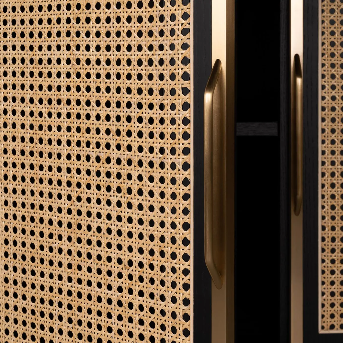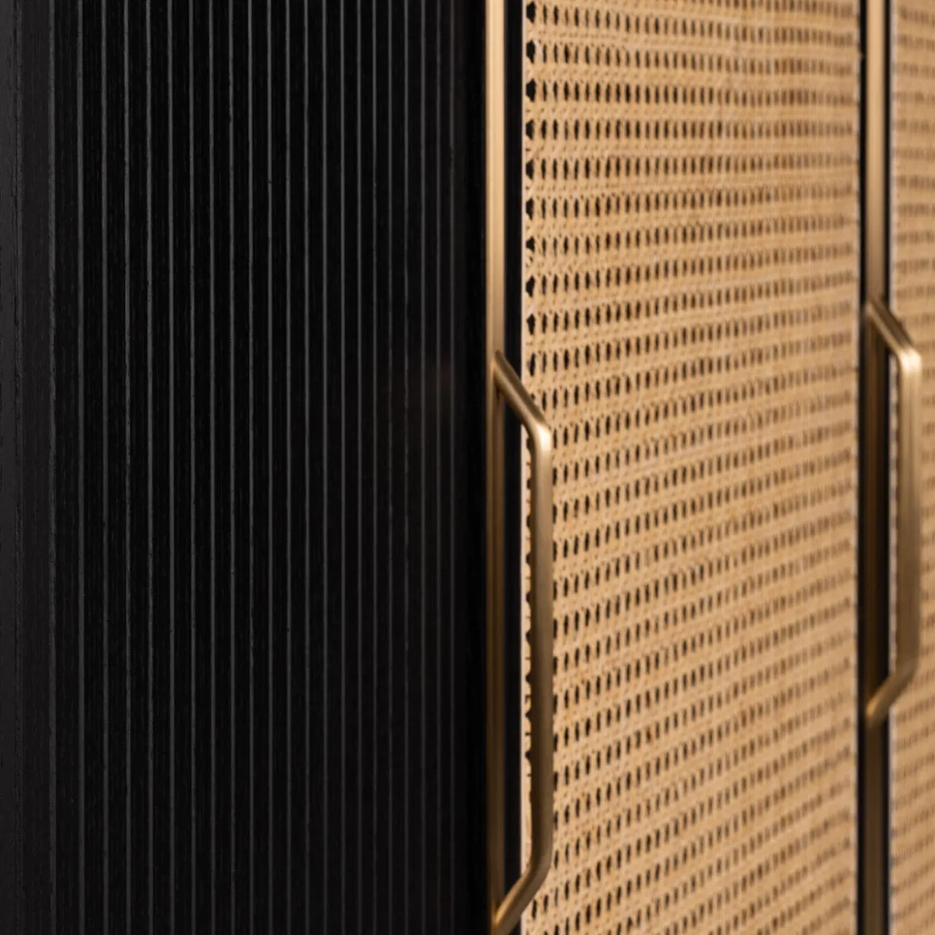 This glamorous sideboard showcases a classic combination of materials in a captivating, modern reinterpretation. Its sophisticated ash frame is rounded at the edges and displays a timeless black finish, which suits the white Viennese cane of the central hinged doors. The sliding side doors showcase a grooved texture, while the sideboard’s tapered feet are embellished with brass details, which also make the handles. The top is in wood, please ask the Concierge for details and pricing. Designed by Libero Rutilo.