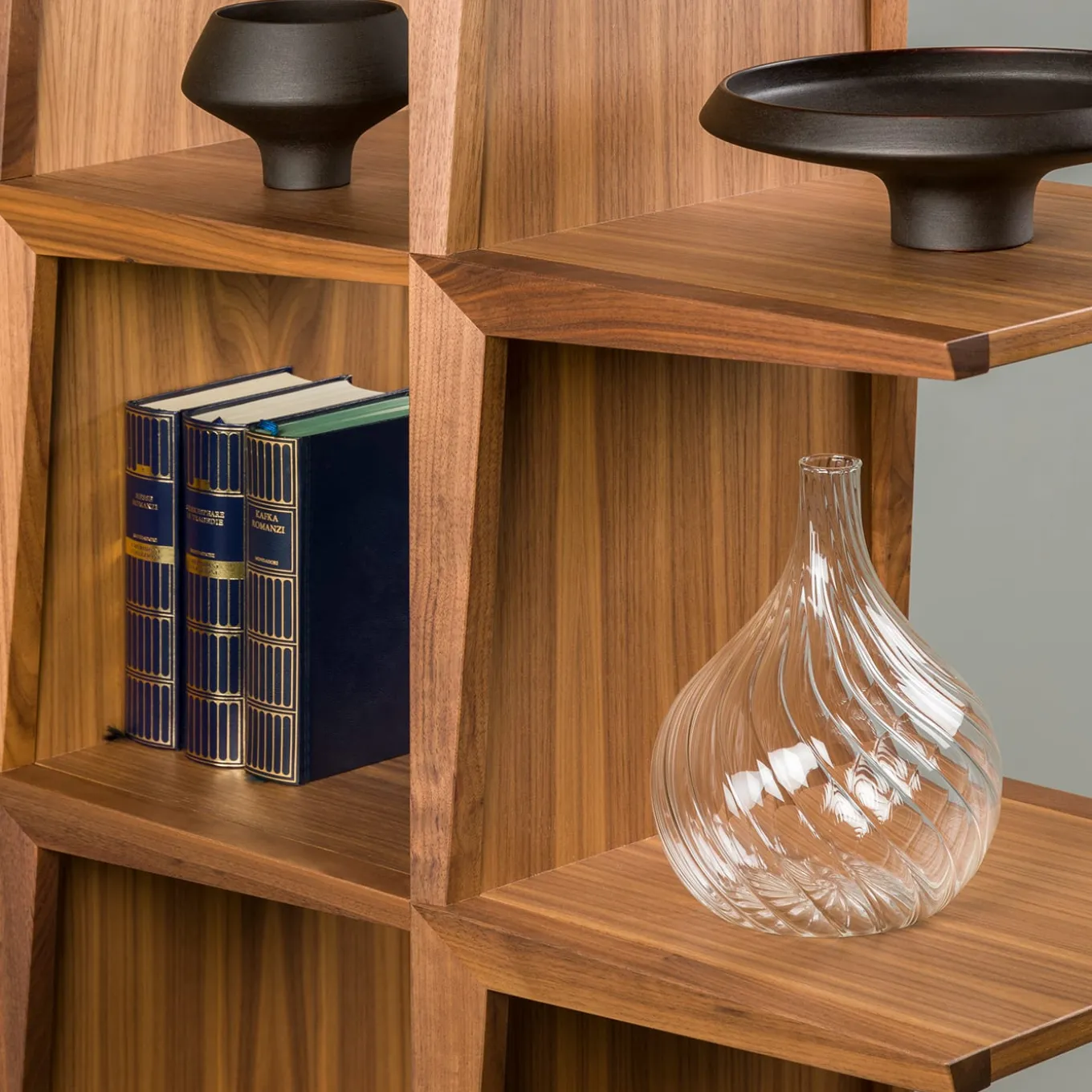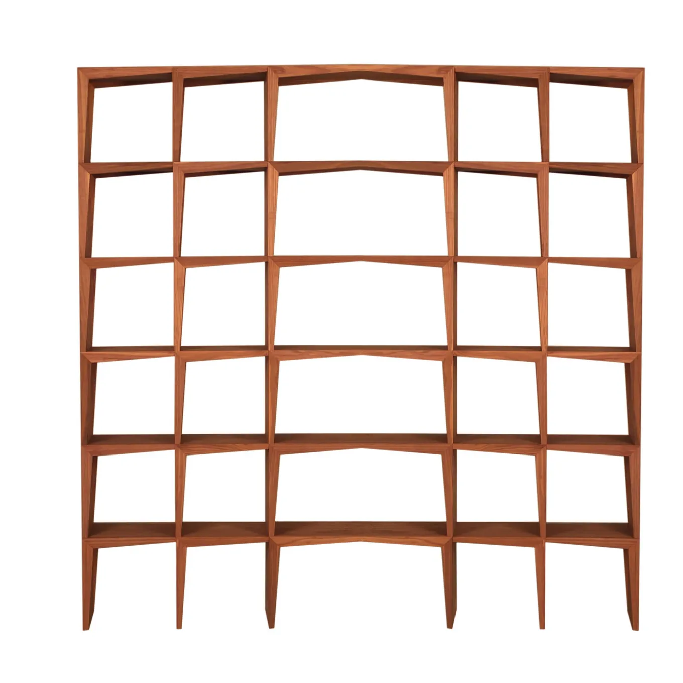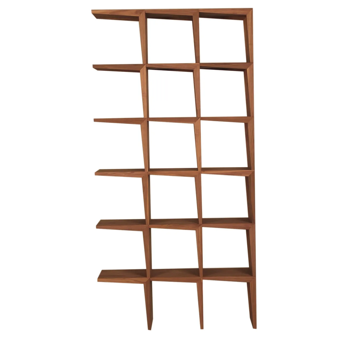 Designed by celebrated Israeli architect Itamar Harari, this ash bookcase can be used on both sides, making this a sophisticated and modern room divider as well. The unique silhouette that leaves one side opened, allows for the combination of several pieces together for a completely customized experience. This network of geometric lines will add a touch of minimalism and elegance to any room.