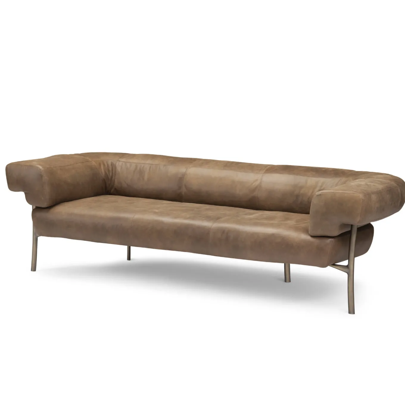 Enveloping and oh so comfortable, the Katana 3-Seat Sofa draws inspiration from the iconic Chesterfield sofa, lending it a renewed elegance. In natural tobacco-tone leather on burnished brass legs, the sofa is calibrated to the millimeter for flawless harmony between its parts, which, to the Milanese architect, is perfect orchestration. For the US market, please contact the Concierge for CAL TB 117 certified fabrics.