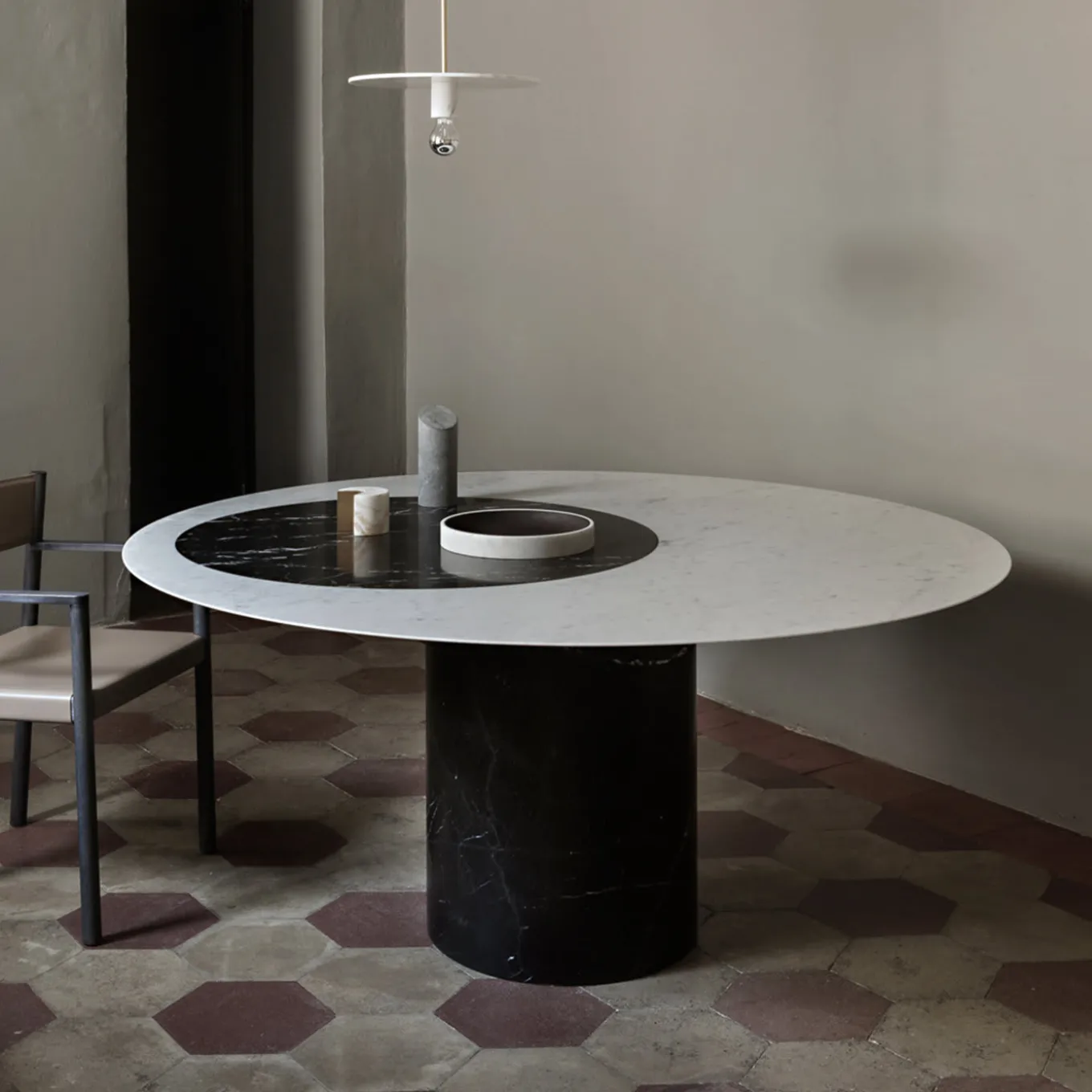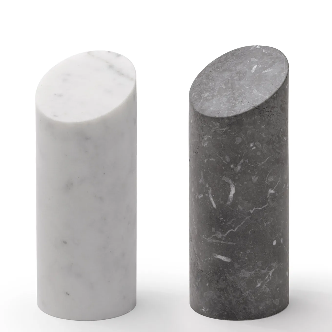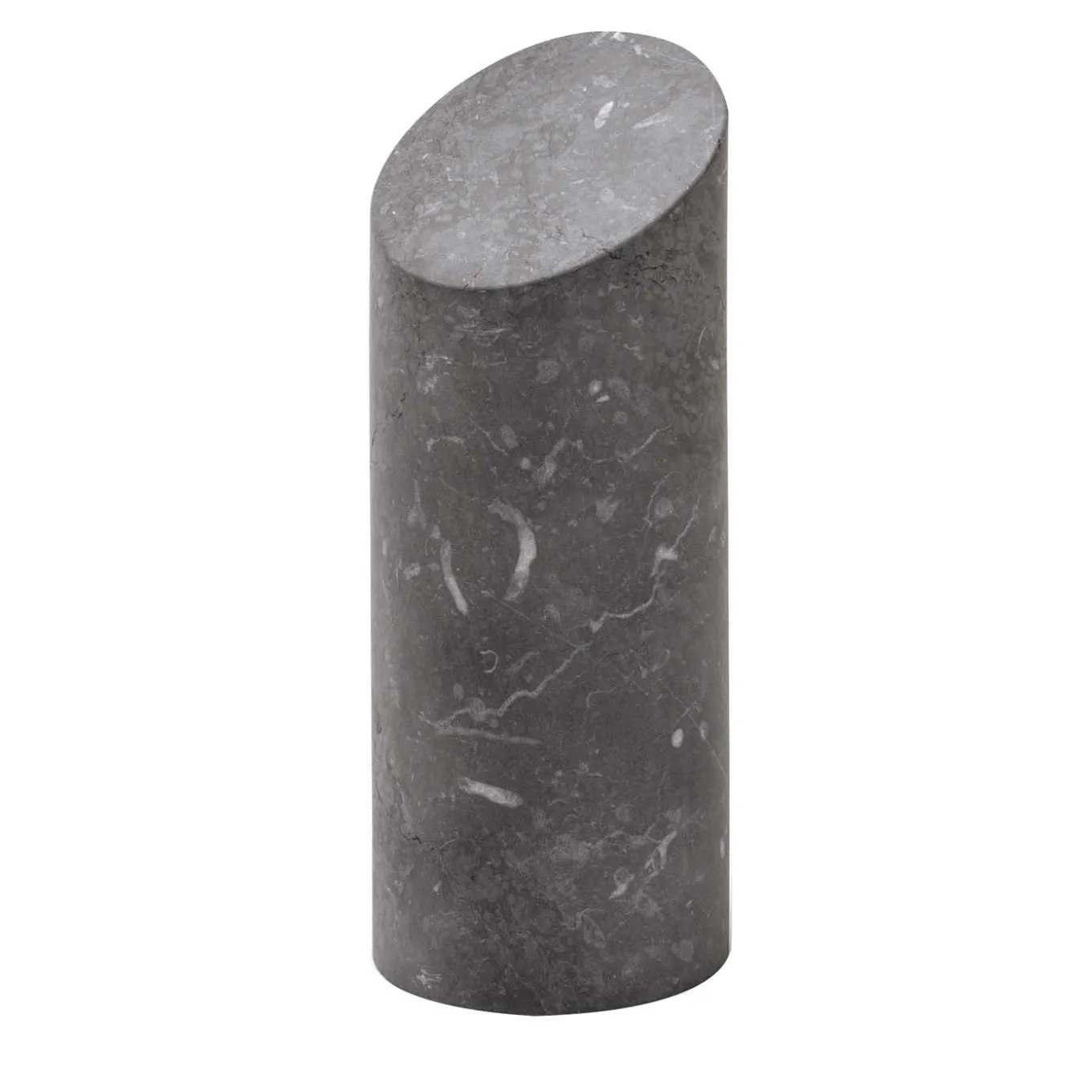 Perfect in a set or alone as a striking accent piece on a desk or console, this elegant bookend is made of black Marquina marble in a pure cylindrical shape with a diagonal-cut top. Designed by Elisa Ossino for Salvatori, this piece from the Kilos series comes also in white Carrara marble. Whether it is used with its twin to flank a stack of books or arranged with the other pieces by the same designer that feature different shapes but the same material, this sculptural object is a modern and eye-catching addition to any living room or office decor.