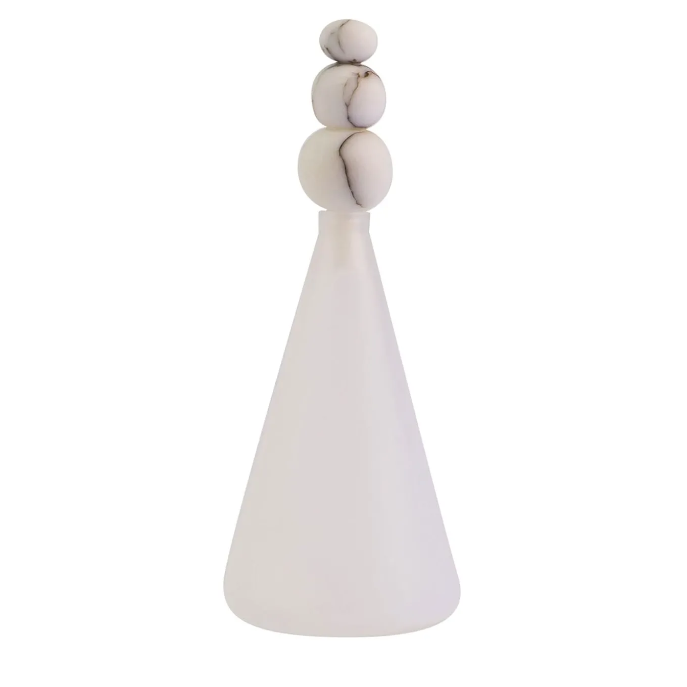 The KITE V3 Bottle exudes timeless elegance with its harmonious blend of materials and refined design. This limited-edition piece is crafted from sanded white glass and white alabaster, creating a delicate interplay of translucency and texture. Topped with a sculptural gem-like stopper resting on a satin glass support, the bottle embodies sophistication and precision. Each piece is uniquely marked with a progressively numbered metal plate, ensuring its authenticity and collectible value.