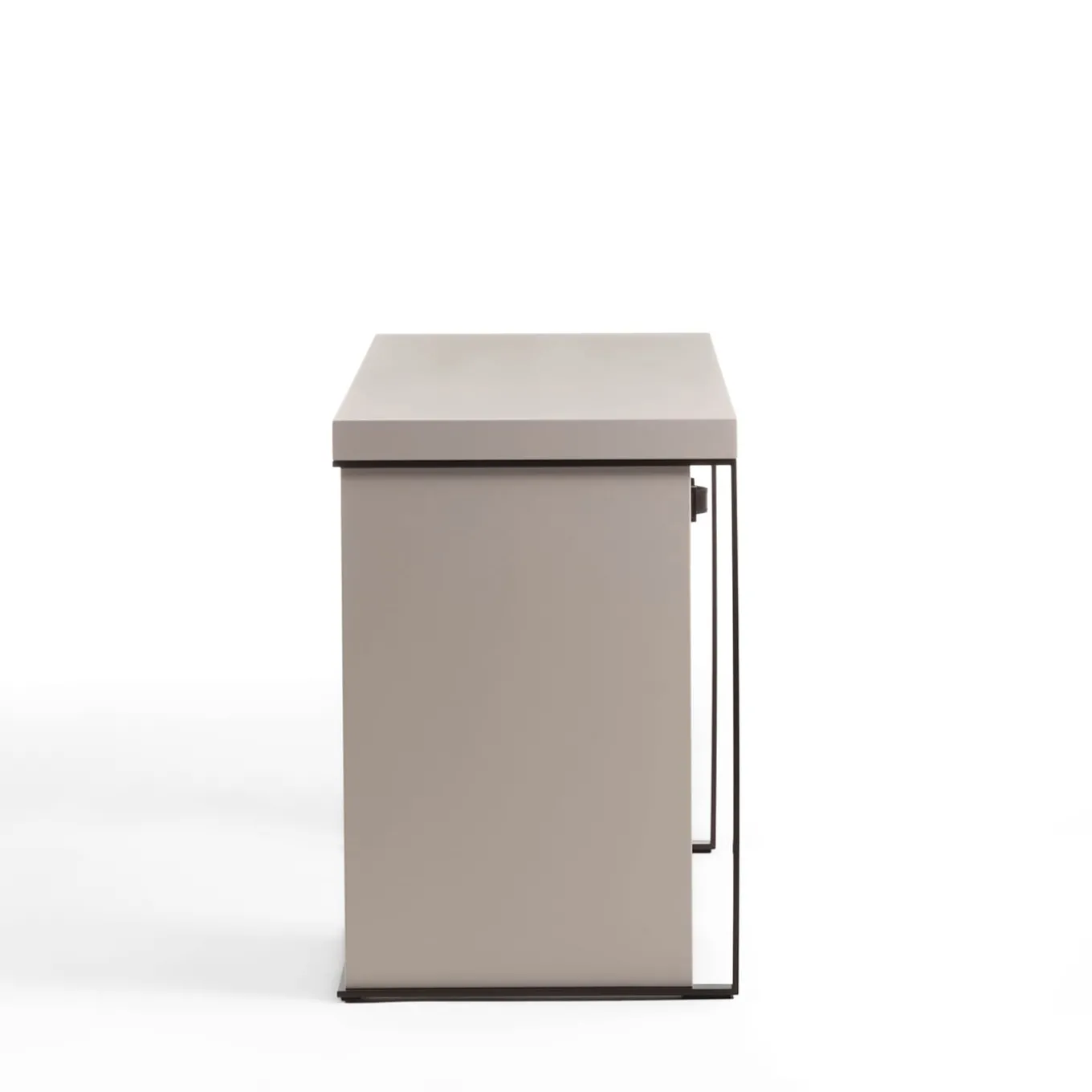 In this superb desk, neat and sharp lines are meant to enhance its luxury details. The asymmetrical frame blends black-varnished metal profiles with bold components in matte cream lacquered finish ash wood, including the sturdy rectangular top and the right column equipped with a practical drawer. Prized leather is used to craft the drawer’s handle and the document pouch placed on the frame’s opposite side. Please check available customizations with the Concierge.