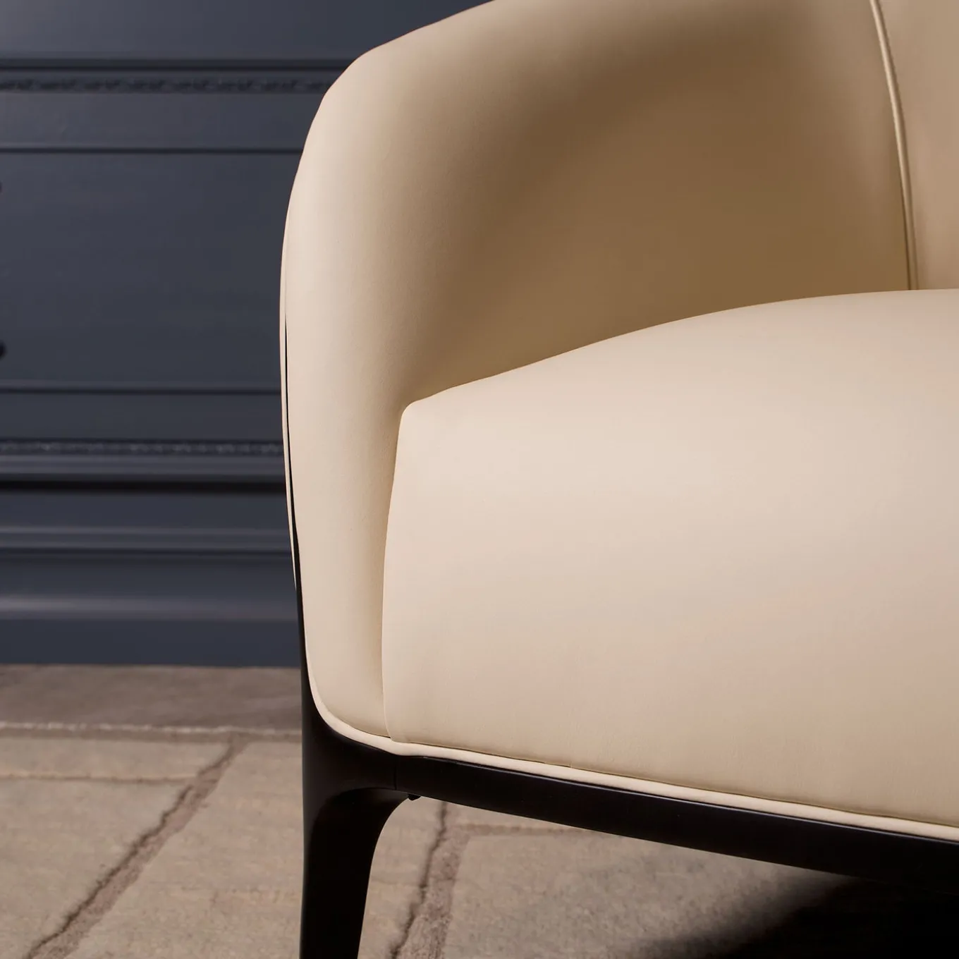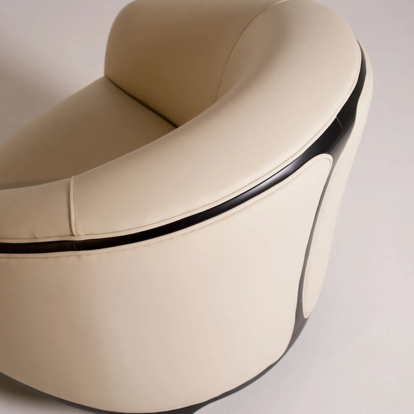 The Koral armchair represents the meeting between the experience of high cabinet-making in woodworking and the expertise in coverings of upholstered furniture. The enveloping line designed by the frame that runs along the entire circumference of the armchair amplifies the rounded profile that makes the object so contemporary and extremely versatile. The Koral armchair is characterized by a very clean aesthetic with an essential ash structure that houses the padded seat and back cushion.