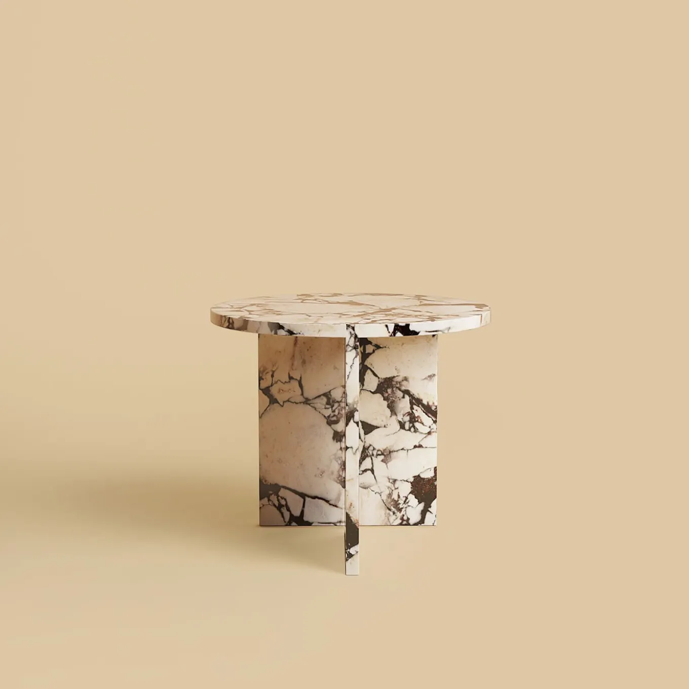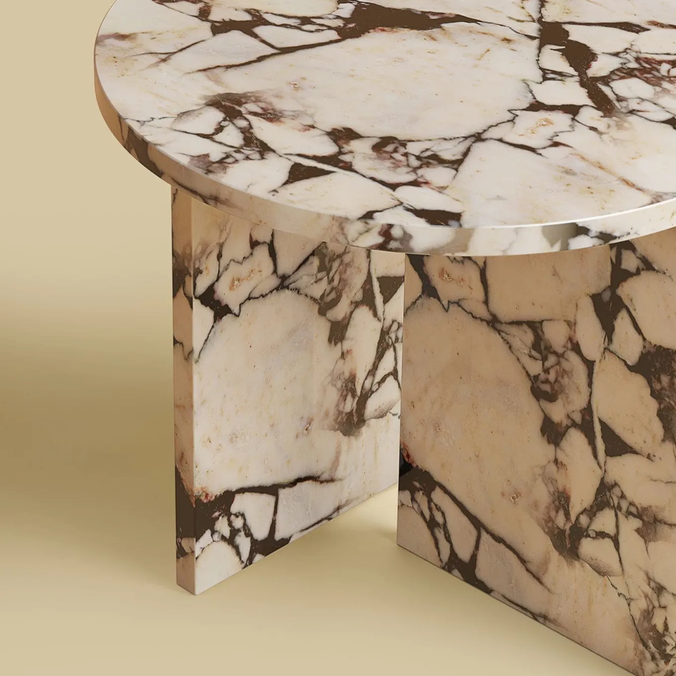 A true statement piece, the Kyushu side table captivates with its stunning Calacatta Violet marble. The dramatic violet veining contrasts with the creamy white surface, creating a visually striking effect. Its minimalist structure and unique marble pattern make it a perfect addition to living spaces, bedrooms, or offices. This artisanal Italian-made table blends modern aesthetics with timeless elegance. Please contact the Concierge for more information.