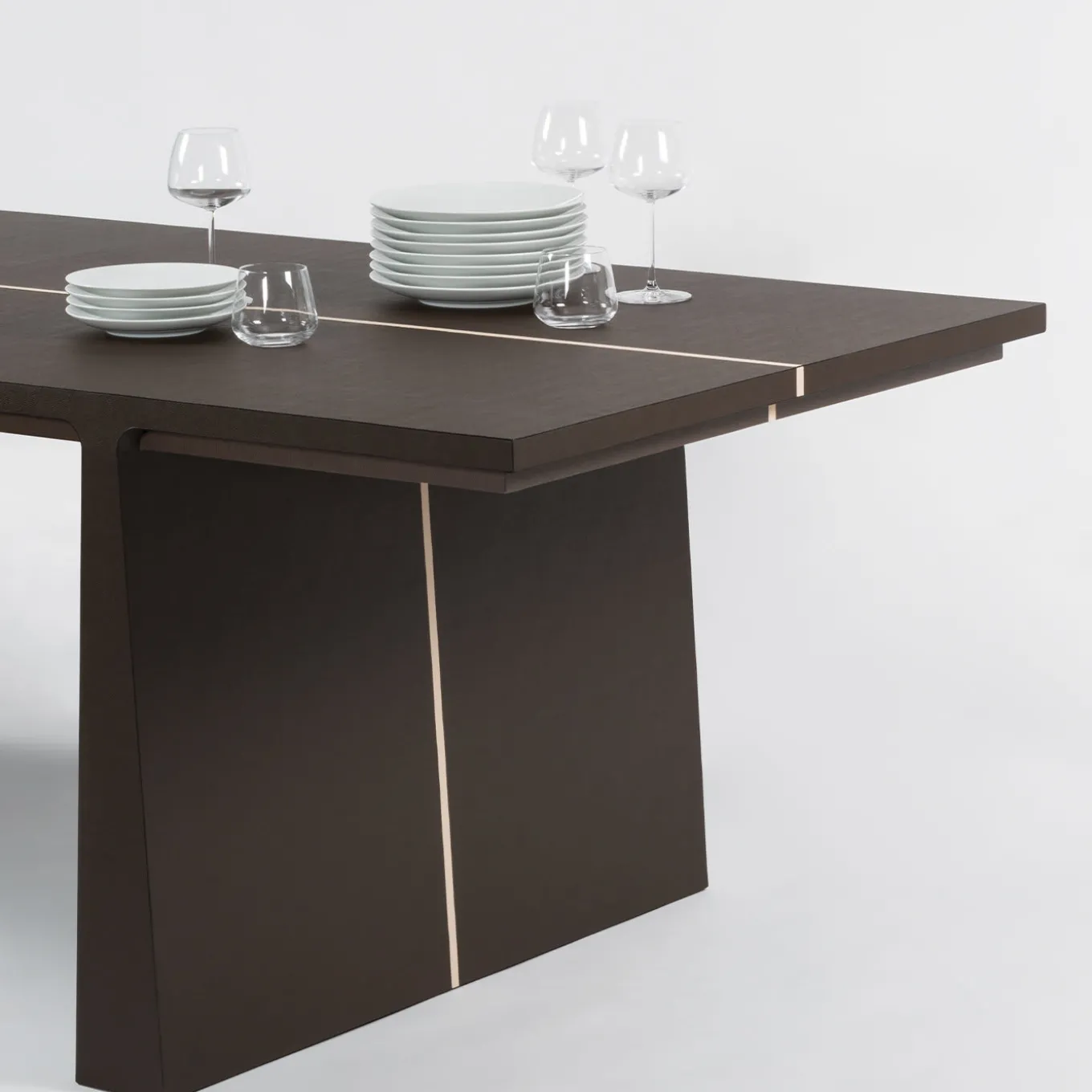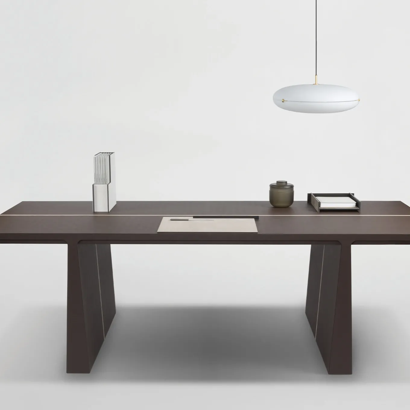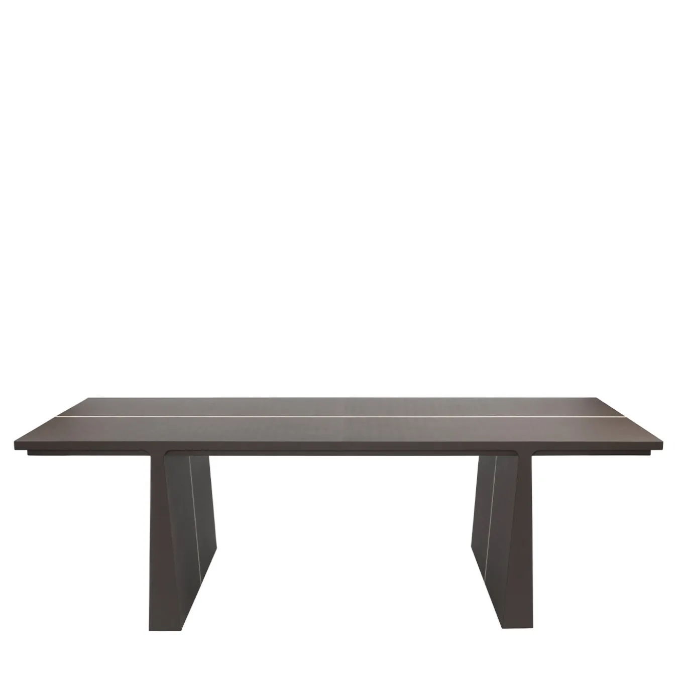 Aptly named La Linea (“the Line” in Italian), this splendid desk/dining table is part of a collection designed by Stéphane Parmentier inspired by the abstract paintings of Barnett Newman. The simple geometric silhouette is fully covered in black leather, marked by a thin white line that runs uninterrupted along the center of the imposing rectangular top and down to the slightly flared legs.