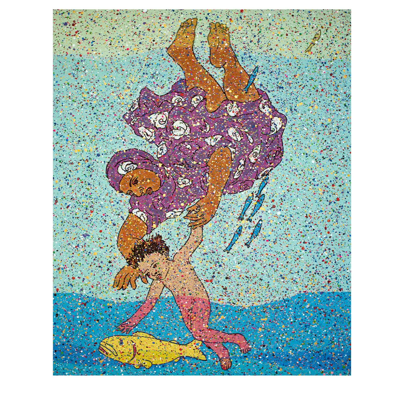 This painting, a unique piece, is part of a series dedicated to the tragedy of migrants lost at sea. It was featured in the exhibitions “La banalità del mare” and “Abissi di Speranza 2024,” held at the Priamar Fortress and Maschio Angioino. Created with acrylic on canvas, the work is characterized by a “dripping veil,” which, according to the artist it describes as a delicate, embroidered curtain between the viewer and reality. The artwork comes with a certificate of authenticity.