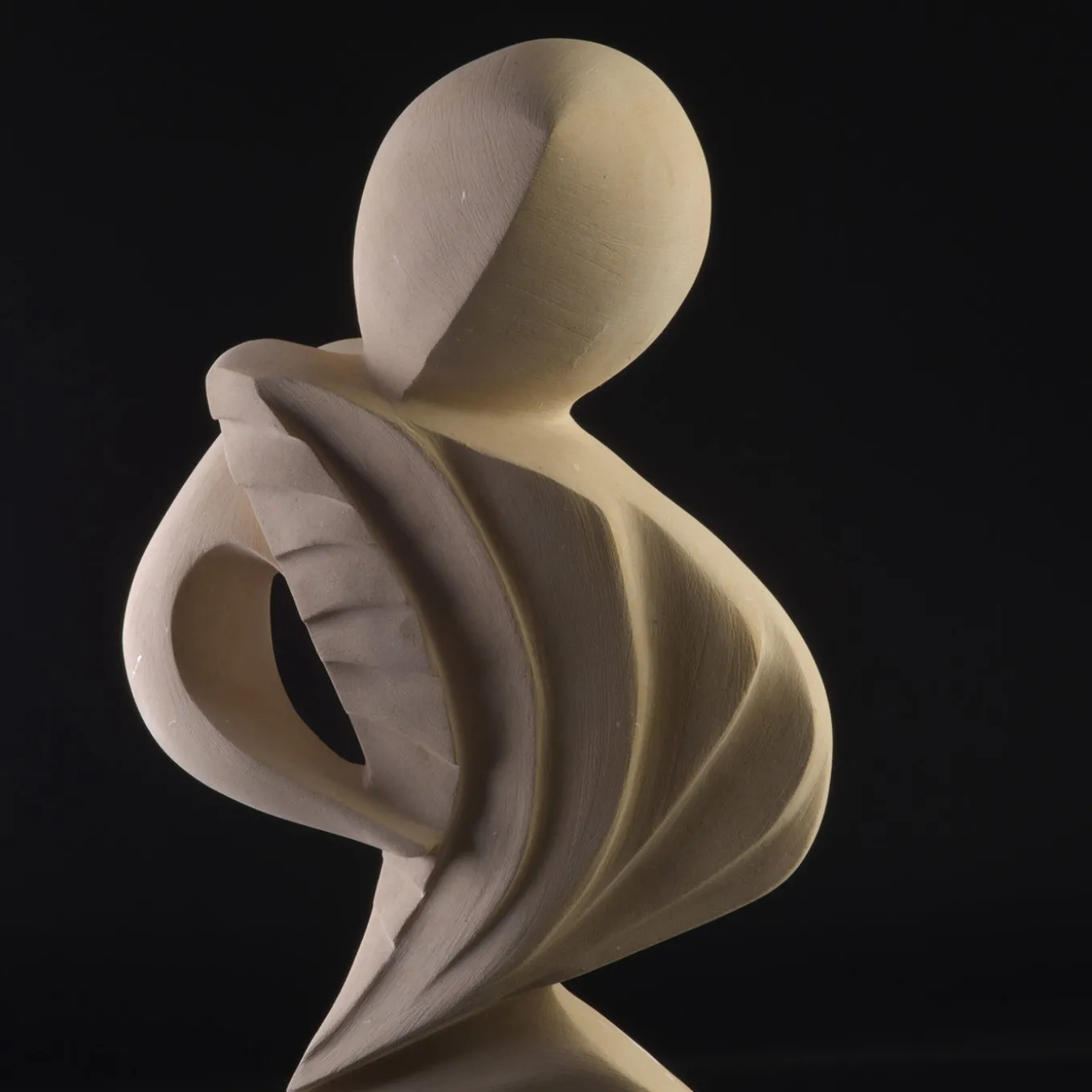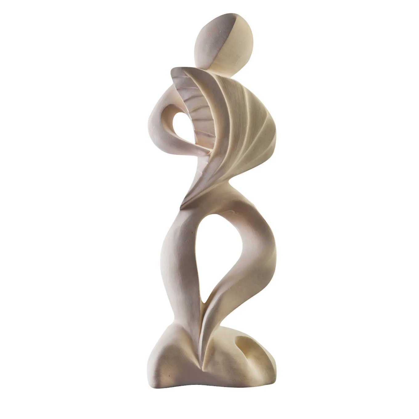 This sculpture embodies the fluidity of wind through organic, flowing forms that convey movement and harmony. Hand-carved from Lecce stone, a distinctive limestone native to the Puglia region of Italy, it reveals intricate details that accentuate its unique, fossil-rich texture. The abstract silhouette suggests a figure suspended in dance, creating a serene yet dynamic focal point for sophisticated interior settings. One-of-a-kind piece, entirely hand-carved and engraved with the artist’s signature, highlighting its authenticity, craftsmanship, and exclusivity.