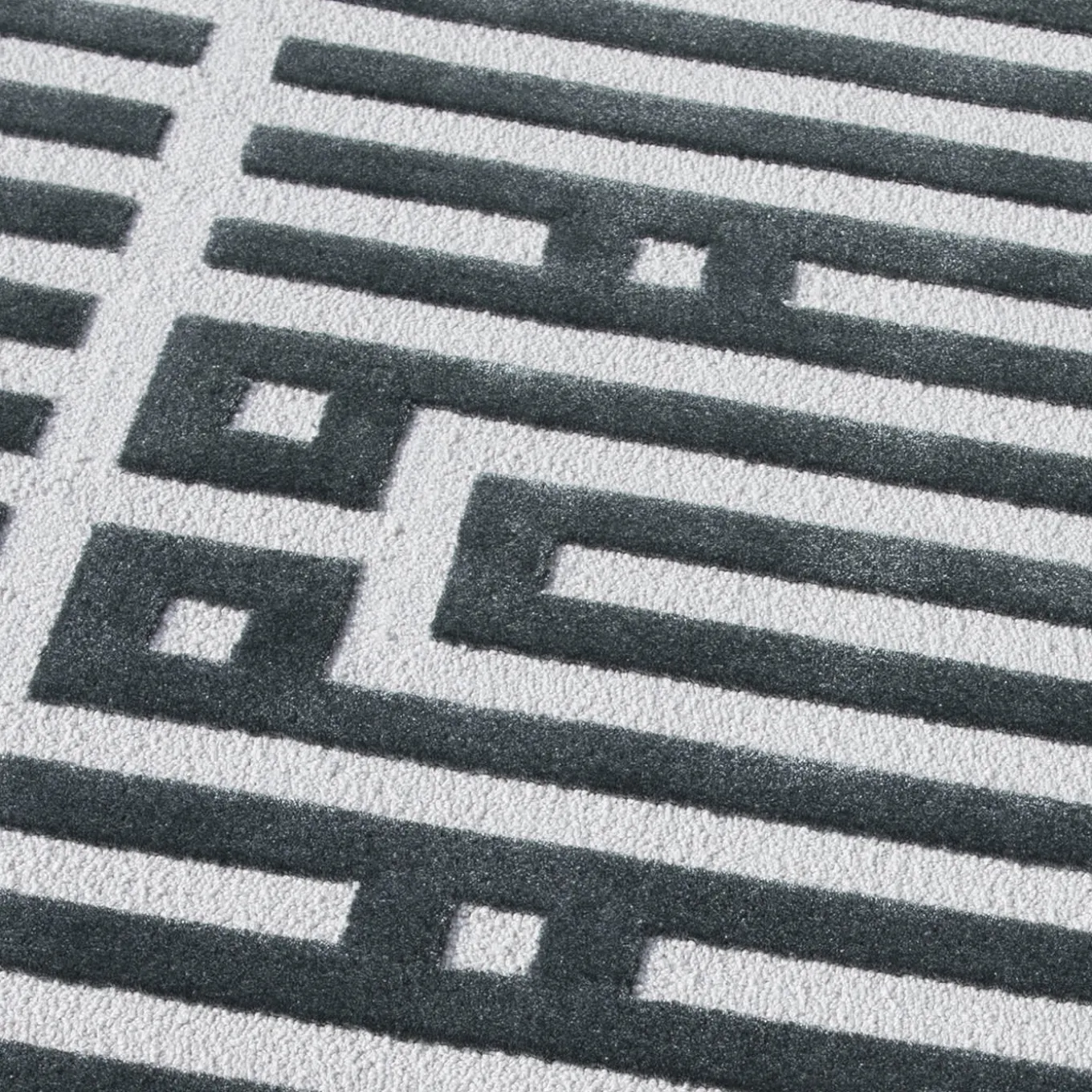 Hypnotizing thanks to its intricate and elegant geometric design reminiscent of a labyrinth, this rectangular rug is a concrete celebration of manual tufting from New Zealand Wool and Tencel. A combination of gray tones further stresses its timeless refinement, suggesting the piece as spot-on addition to elegant contemporary interiors. Please explore available tailor-made options with the Concierge.