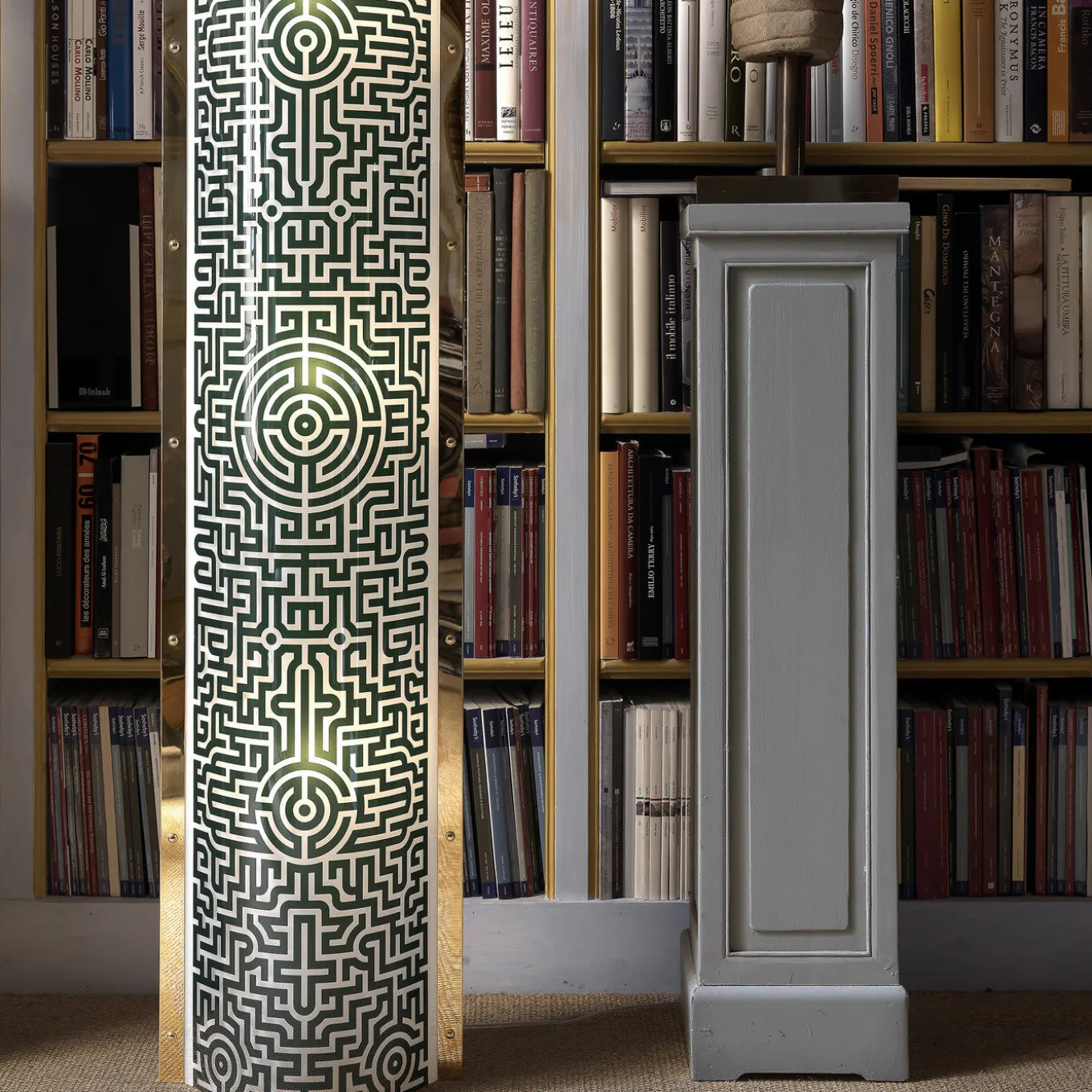 This exquisite floor lamp is part of the Lighting Archives, designed by Studio Job. Its elegant silhouette, crafted of engineered plastic, is adorned with a distinctive pattern that creates a maze-like motif in turquoise, adding character to a modern or contemporary decor. Inspired by the Tube, a statement piece produced by Slamp in the 90s, this object of functional decor will be a stunning addition to an eclectic or modern home.