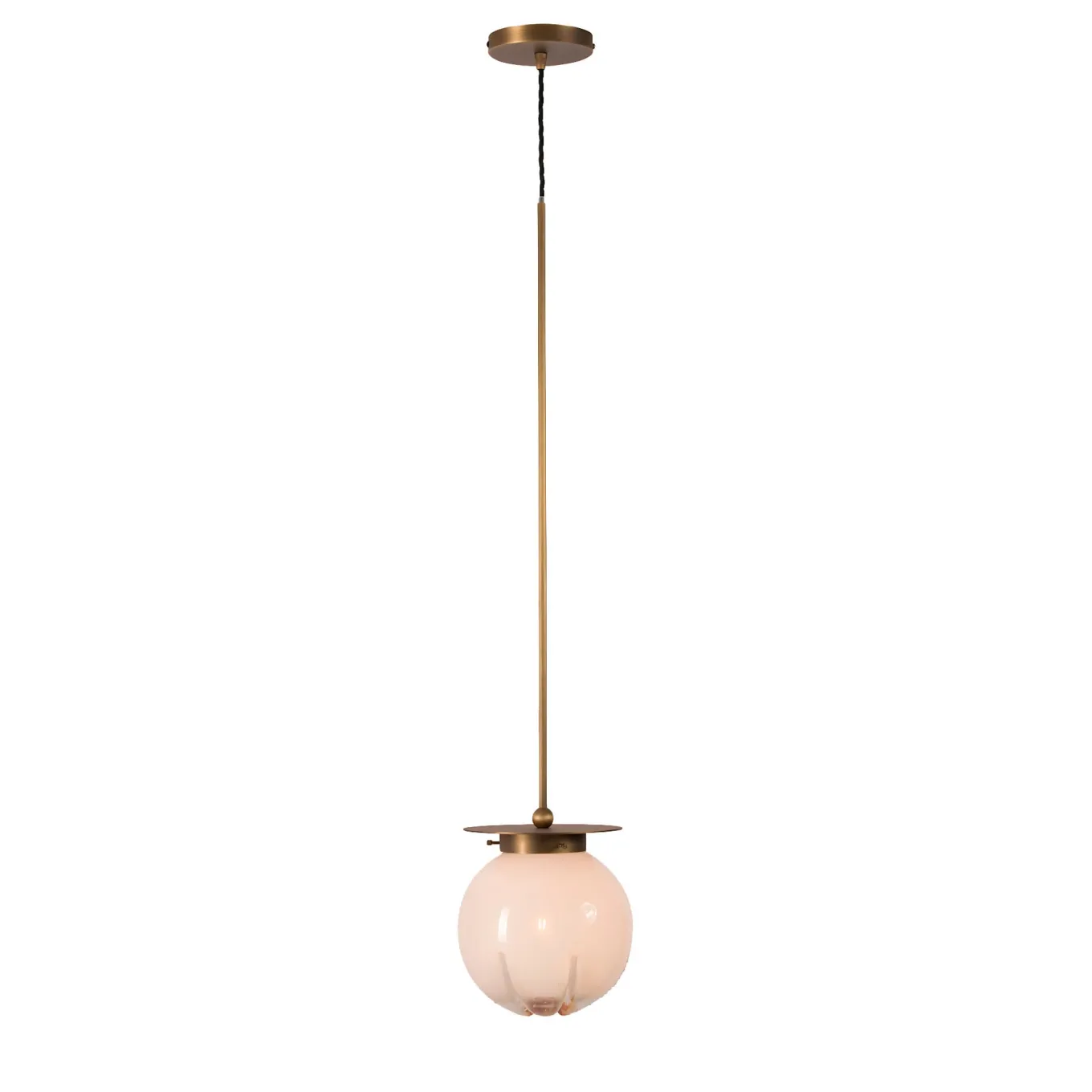 Pendant lamp with diffused light, featuring a structure in dark bronze-finished brass and a glossy opal glass diffuser. Perfect for adding elegance and warmth to any space. Bulb are not included.