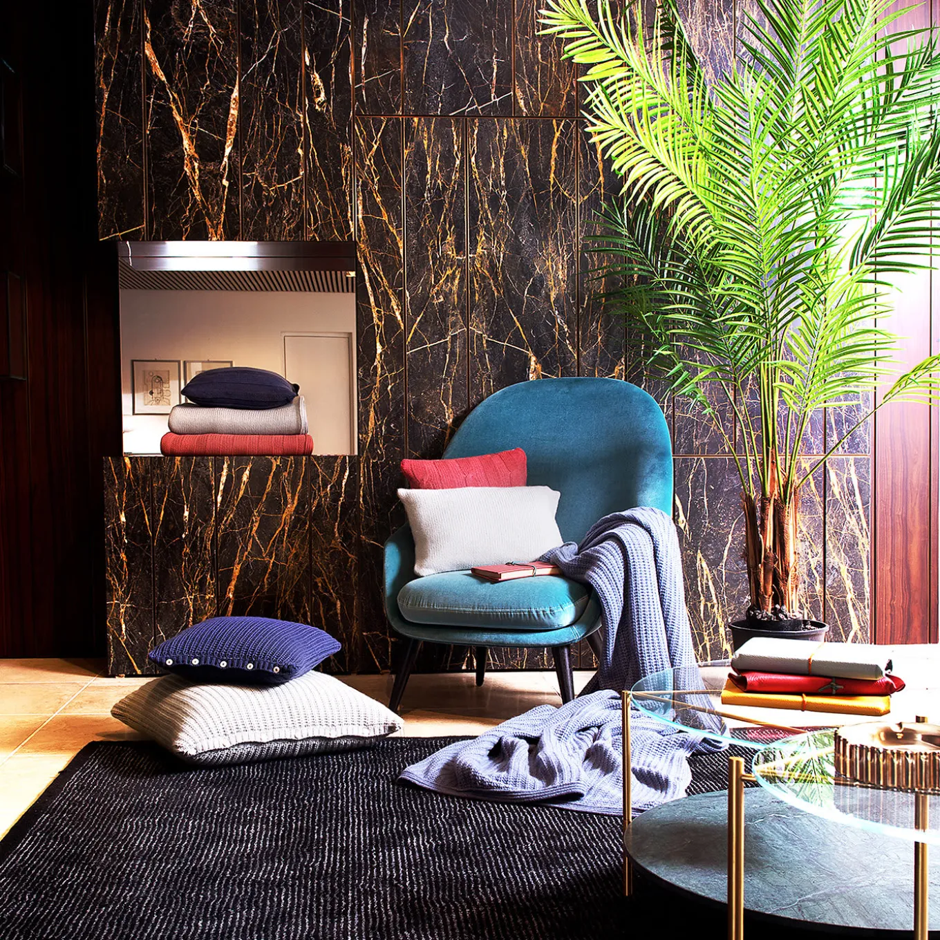 Weaving and first-rate cashmere capture the prestige and value of this throw offered in a versatile tone of Air Force blue. As a luxury runner placed at the end of a bed or as a purely decorative object unfurled on a sofa, this throw will enchant with its stocking/purl knitting design – six threads – that offers a pleasant tactile effect when touched.