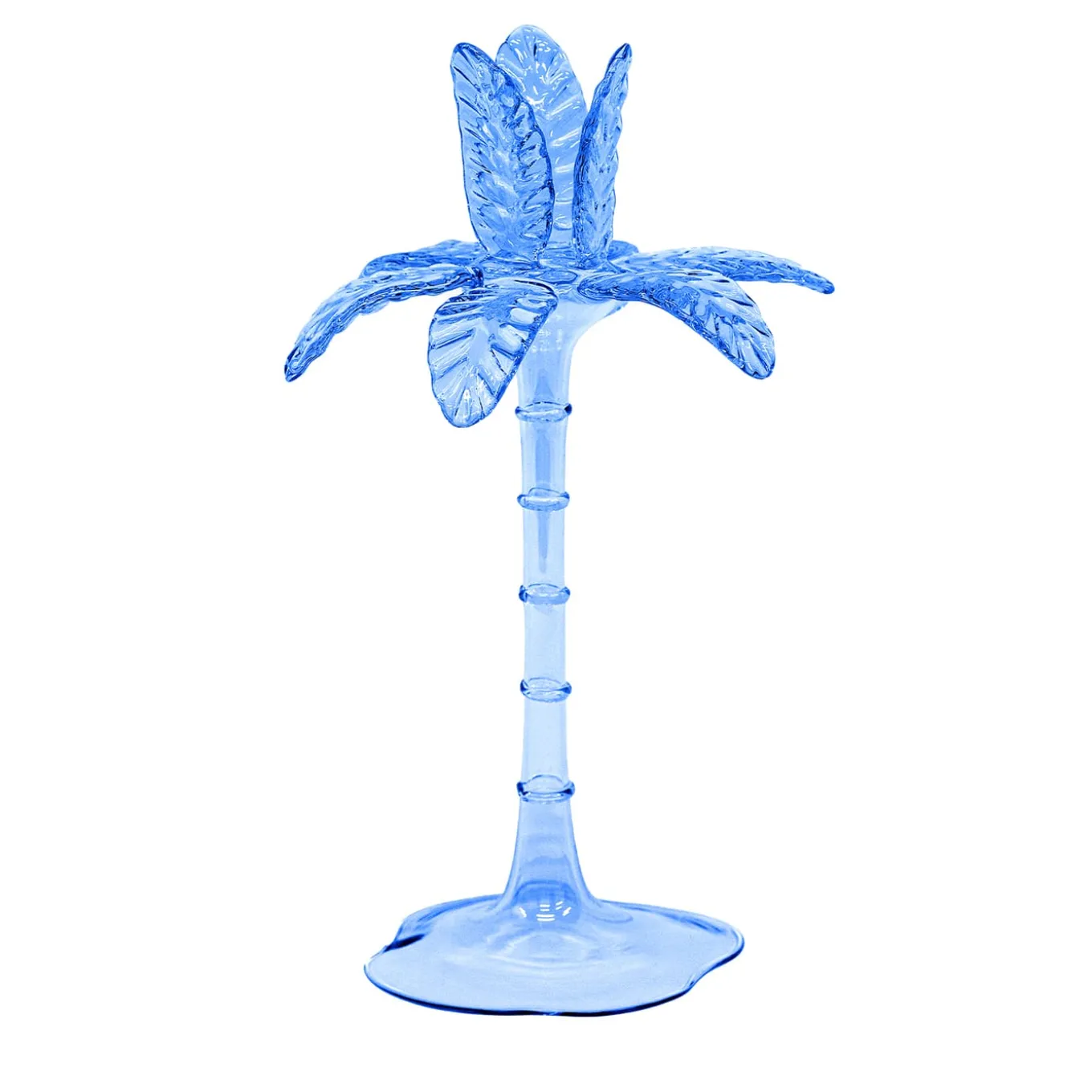 Las Palmas Candleholders Collection is an excellence of Italian Made in Italy. They are produced in blown glass by artisans from Veneto, this makes each piece unique and unrepeatable. Their transparency lends elegance and style to any room in which they are placed, and the three different sizes allow you to create a small exotic garden in your home. Available in seven different colors to give you the opportunity to play with heights and chromatics. Please, ask the Concierge for more information.