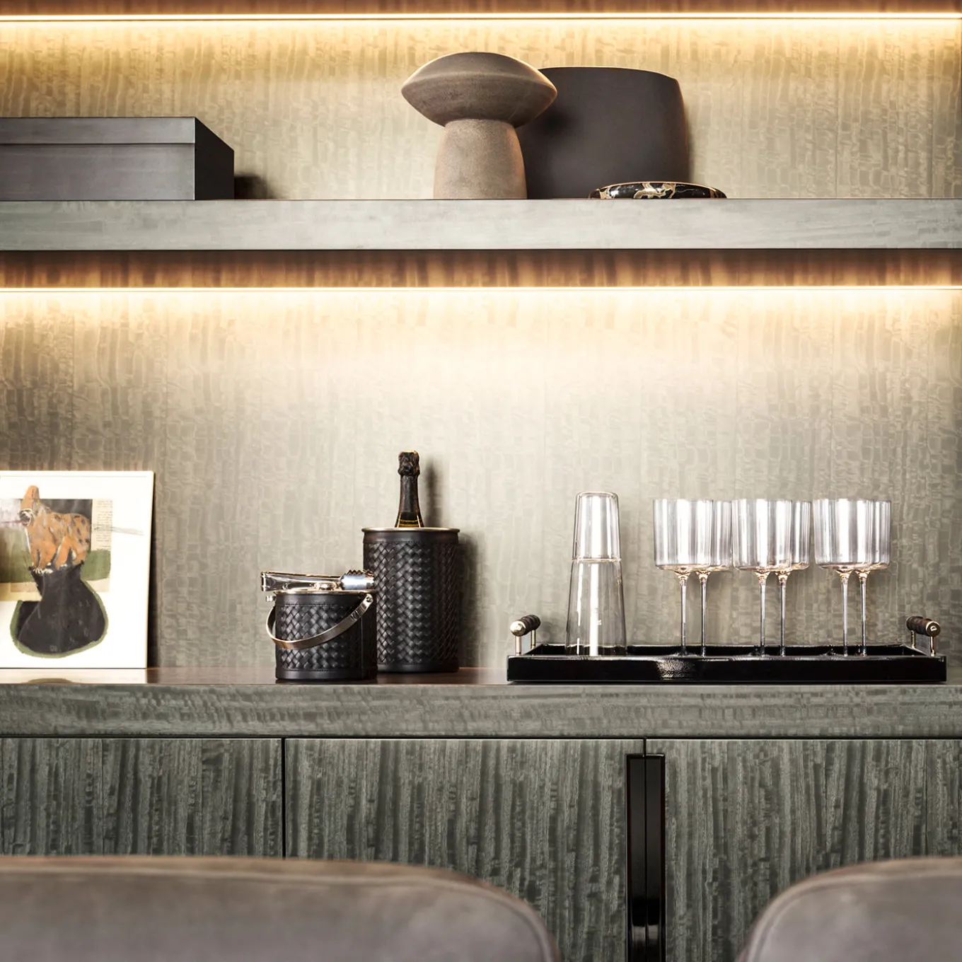 Lacquered tray with leather-covered bamboo handles. It is a perfect synthesis between aesthetics and functionality. A design object capable of providing the surrounding environment with style and personality.
