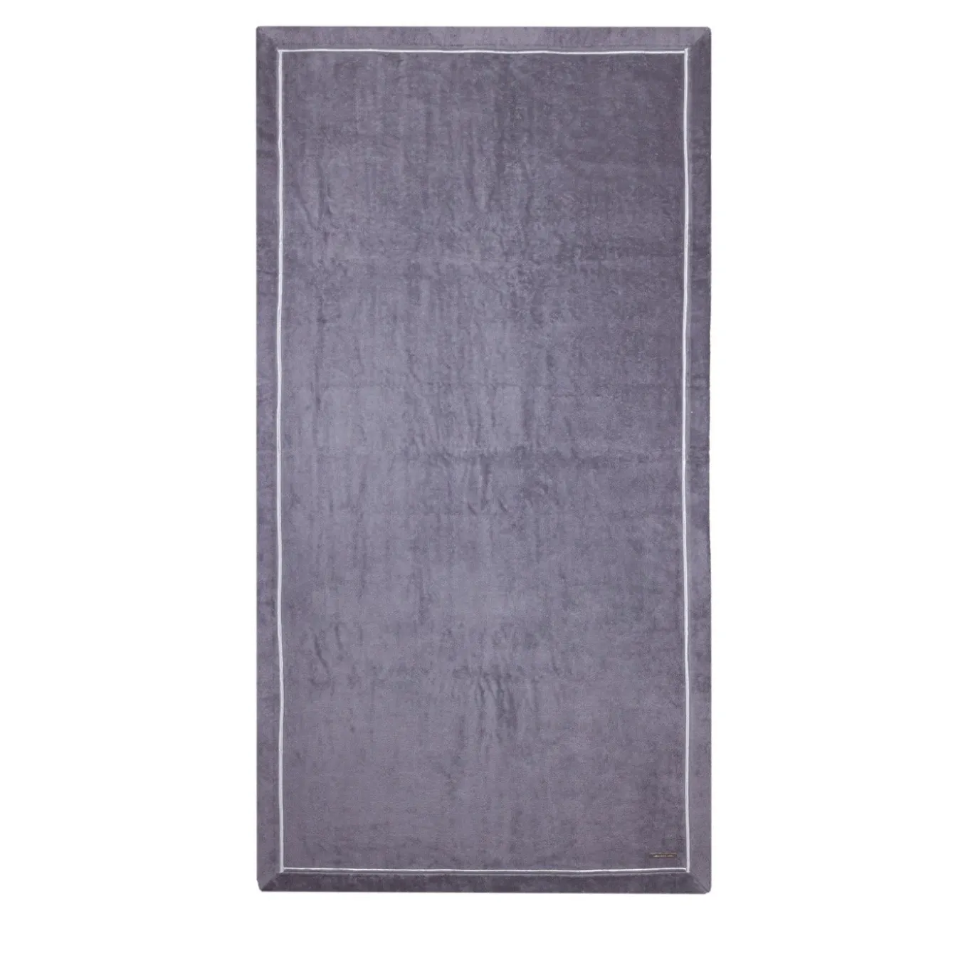 This elegant beach towel in lead-grey is crafted in Egyptian cotton of the finest quality, accented by a silver ribbon embroidered in Lurex yarn that runs around its perimeter. The metal logo plate has been embossed and sports a palladium finish.