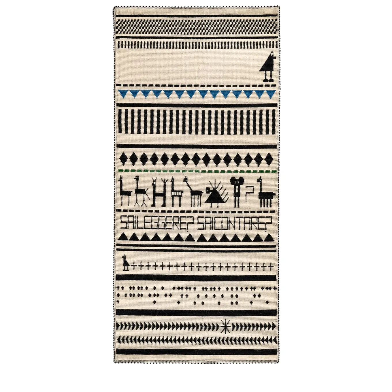 This rug is called “Leggere in fondo all’anima”, an italian sentence that means “To read the depths of the soul”. Hand-woven in Sardinia, this rug is characterized by recurring geometric shapes and colors that become an integral part of a timeless language. An innovative element is the use of Braille characters, which often conceal the meaning or the name of the textile artwork.
