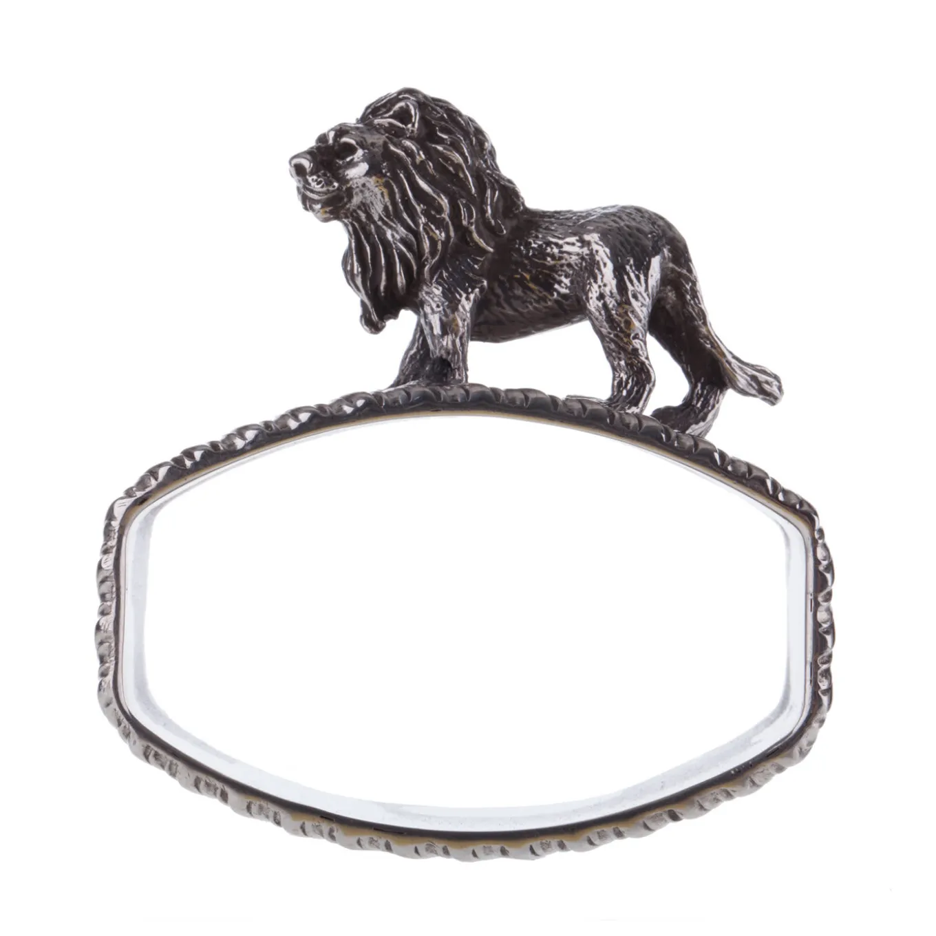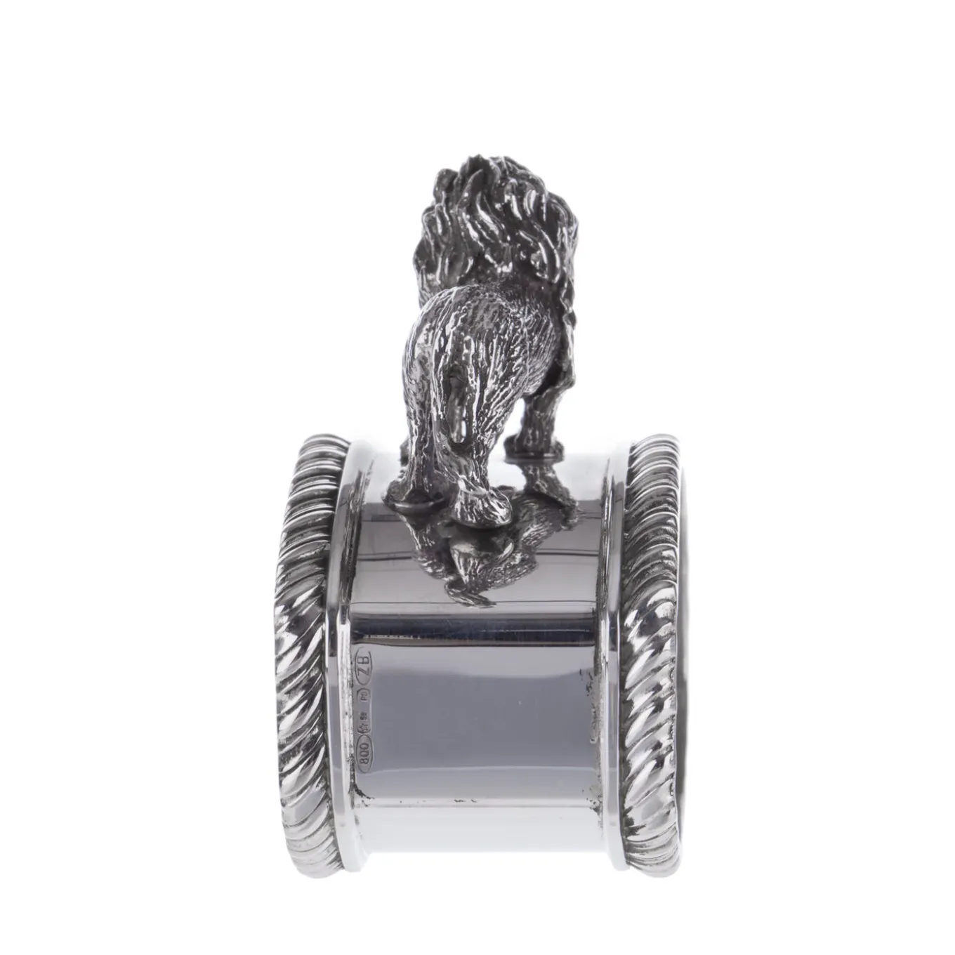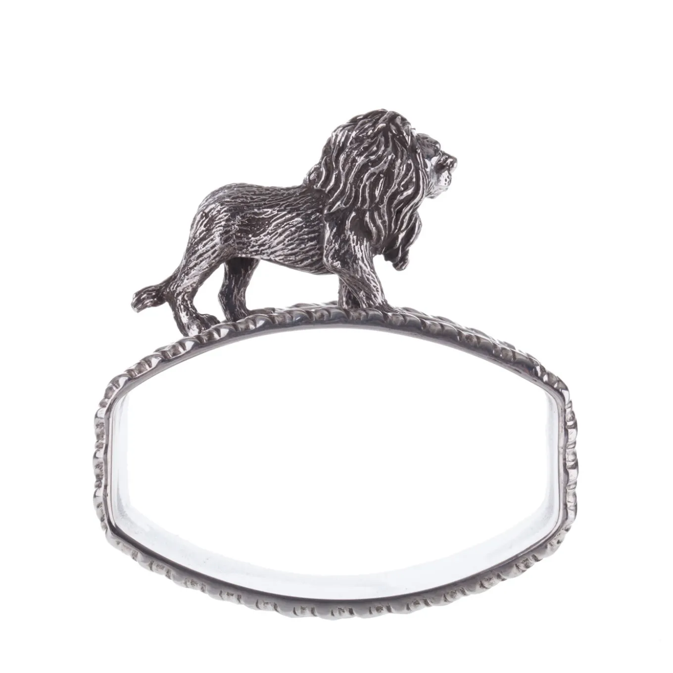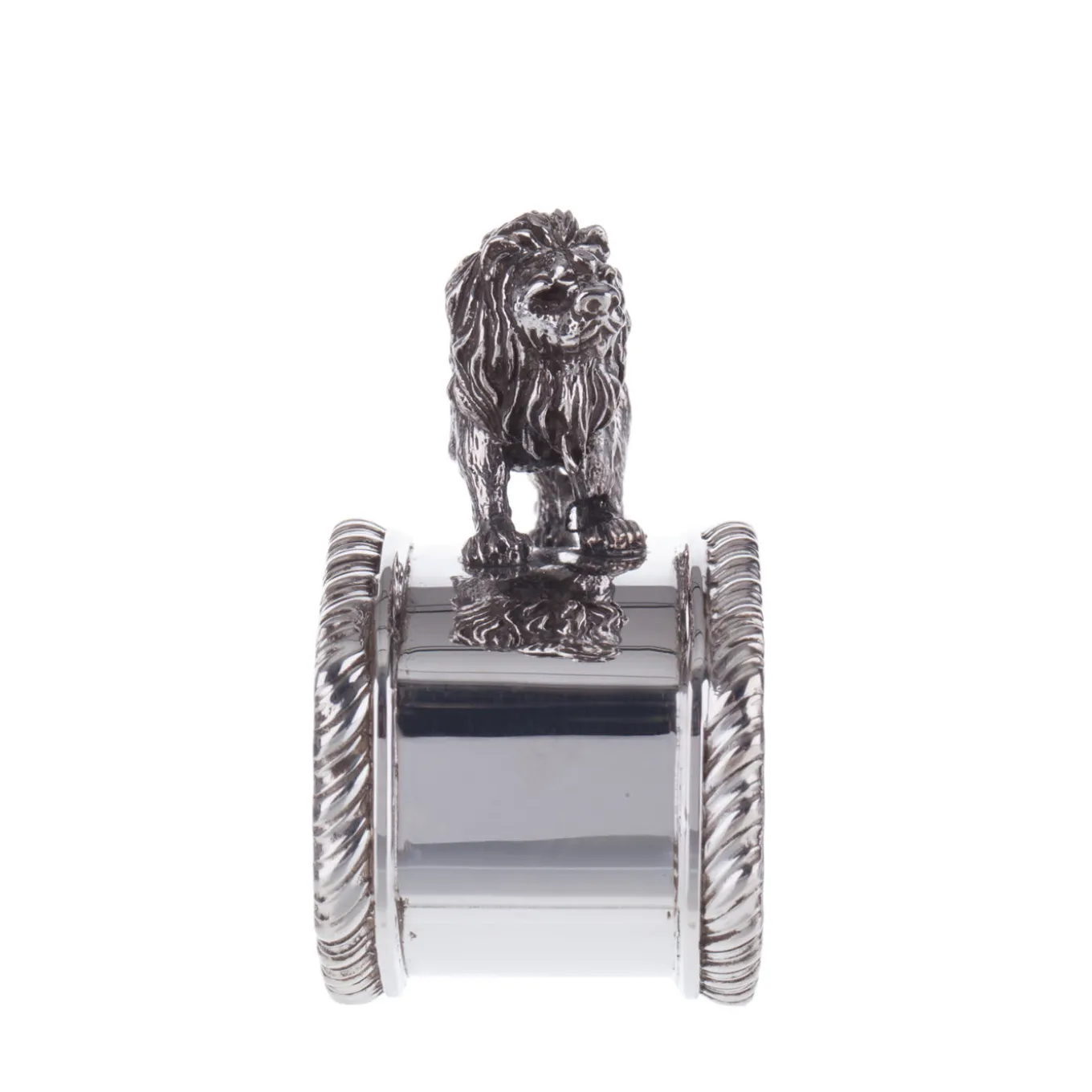 This is a Regina Anna sterling silver napkin ring in by Florentine silversmiths Pagliai. The piece features Regina Anna style rims and a graceful statuette of a lion, handcrafted using the lost-wax casting and then finished by hand. Pagliai offers different animal-inspired napkin rings that can be mixed and matched according to your taste.