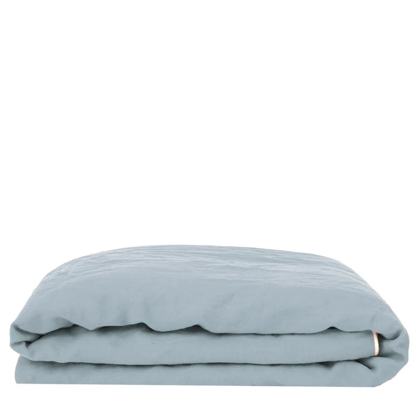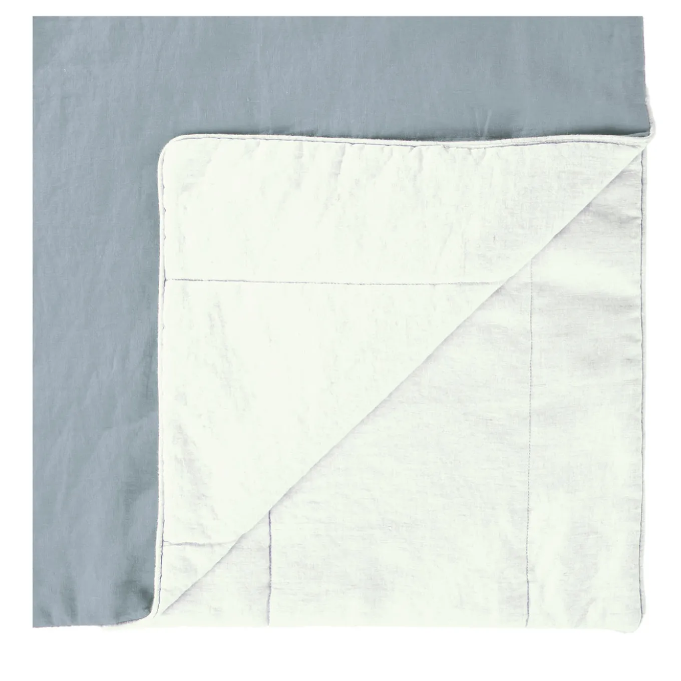 Add a touch of luxury to your bed with this light blue linen blanket. Lightweight yet sumptuous, it serves as a cool cover in summer and a warm layer in winter. The blanket features a natural linen bottom with a top color of your choice and is edged with piping in a color you select. A stylish and versatile addition to any bedroom decor. Available in various sizes, please ask the concierge for other details.