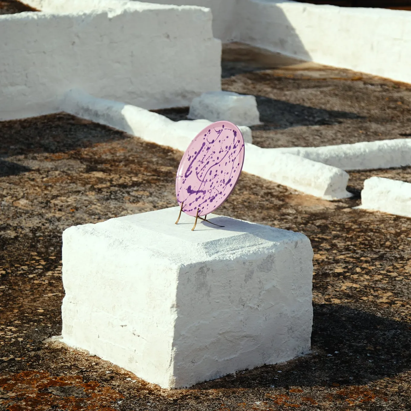 Large decorative centerpiece plate in hand-decorated glazed ceramic. This refined centerpiece plate is entirely handmade by skilled Italian artisans respecting history, nature, and people, reinterpreting the traditional Apulian macchiato technique, the brand’s emblem, as a celebration of the joyful spontaneity of Mediterranean nature.
