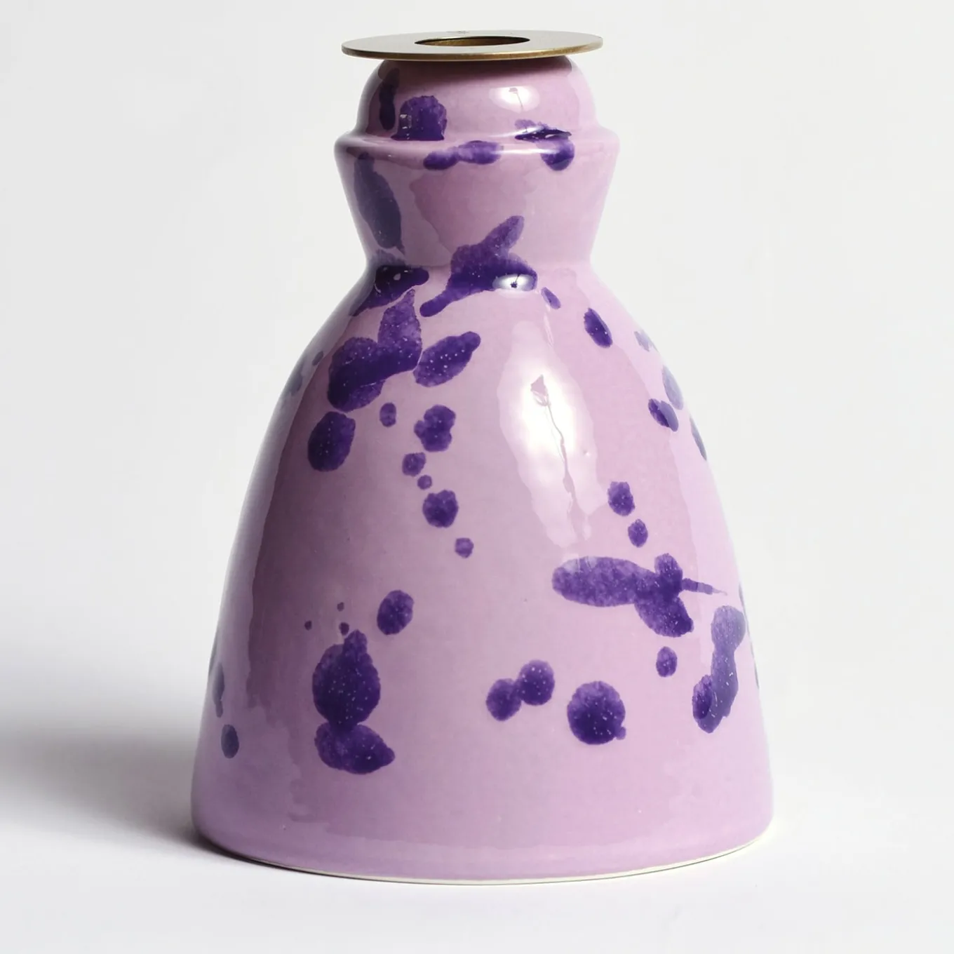 Decorative hand made ceramic candlestick with satin brass wax collector and 4 scented candles set Lavanda e Iris. Immerse yourself in the magic of a candlelit dinner with the delicate Lavender and Iris fragrance. The candlestick comes in a gift box that includes the set of 4 scented candles, made of recycled cardboard from certified sources