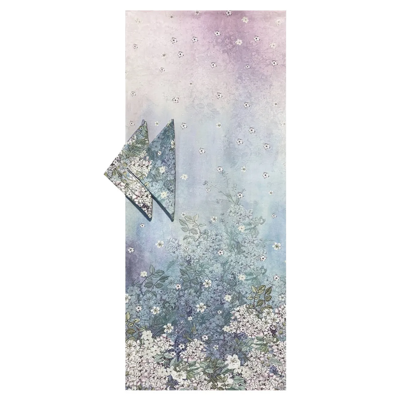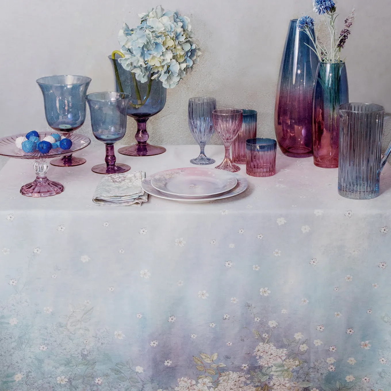 A marriage of delicate color gradients from blue to purple distinguishes this linen tablecloth that will dress any table for a celebration. The romantic pattern of small white blossoming flowers results from unsurpassed craftsmanship and the unique artistry of Luisa Beccaria transforms this exquisite piece into an heirloom to be passed down for generations to come. Both classic and contemporary, this tablecloth comes with 6 matching napkins and is available also in 240 x 240 cm. Please contact the Concierge for details.