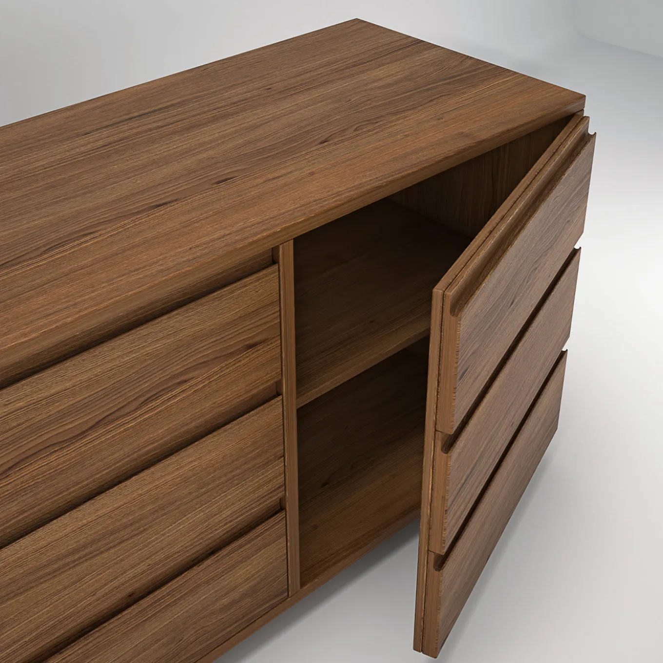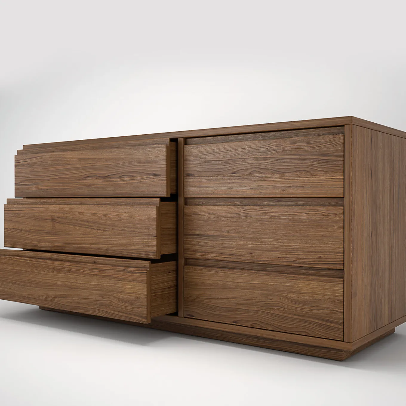 Rich in storage potential, the versatile Linnea Dresser delivers minimalist elegance with its Scandinavian-style design handcrafted entirely of solid oak wood. The deliberate lack of ornate details lets the artisans’ mastery take center stage. The design reveals an unexpected trompe-l’œil effect, with three drawers on the left and a single door on the right that recreates the optical illusion of drawers. Equipped with Blumotion closing system, the interior is in solid beechwood and the recessed base has hidden leveling feet for stability. Fully customizable upon request.