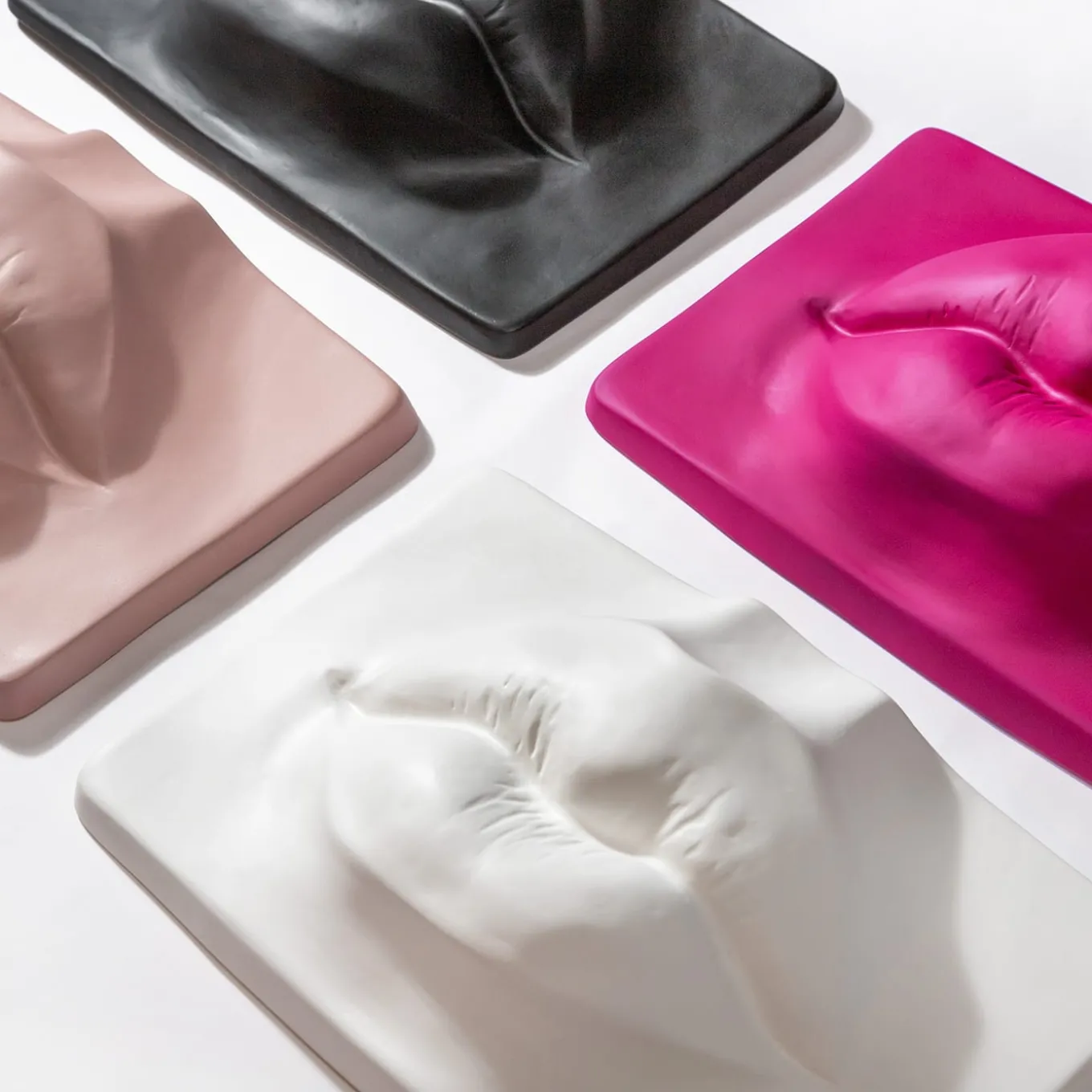 This entirely made-by-hand sculpture presents a mixture of plaster and cement mortars. It can be hung to the wall through a special recess at the back, which allows the sculpture to be hung thanks to the supplied metal brackets. The compact and smooth texture is vibrant fuchsia It can be painted in any other color upon request. Please, ask the Concierge for further details.
