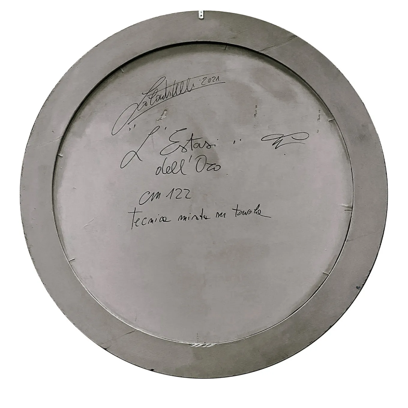 Through an intelligent study of mixed techniques on wood and the use of inserts in gold leaf, the artisans of Studio Caiafa have put at the disposal of the artist Lola Vitelli their experience and mastery to create ”The Ecstasy of Gold, a unique work capable of being seen from time to time with renewed interest. Lola Vitelli’s painting is illuminated by a tumultuous inspiration between behavioral and instinctual activity capable of putting the artist in contact with the truest and deepest self. The artwork is delivered with a certificate of authenticity.