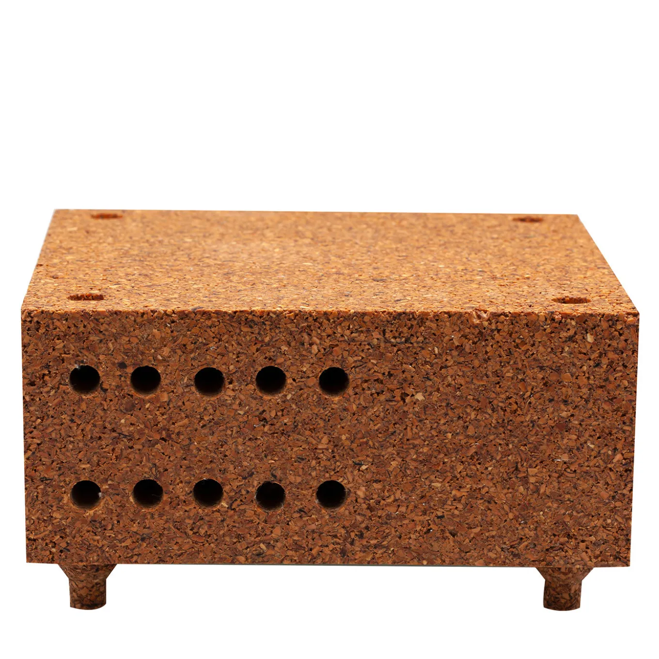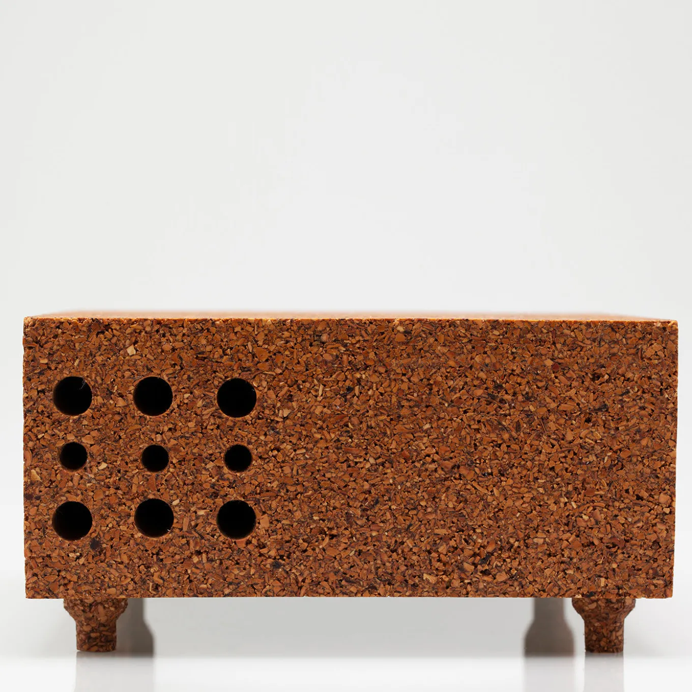 The Lonely Bees’ Club is a functional object designed to create a welcoming haven for bees in urban jungles. Entirely crafted of Keep Life®, this hive has a minimal silhouette (20x20x10cm) raised on four feet that fit perfectly into the top holes, making the design a modular stackable system. The “artificial galleries” on the side (19cm deep and with a diameter ranging from 4 to 16mm) provide nests for the bees and are closed on the other end to protect them from inclement weather and predators.